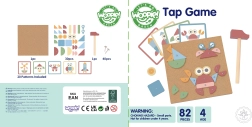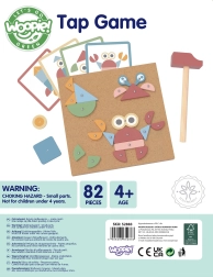Rinkinyje yra 30 medinių detalių, 40 vinutėlių, medinis plaktukas, kamštinė lenta ir 10 dvipusių kortelių su 20 motyvų 3 sunkumo lygiuose. Puikus pasirinkimas smulkiajai motorikai, akies–ranka koordinacijai ir erdvinei vaizduotei lavinti.
