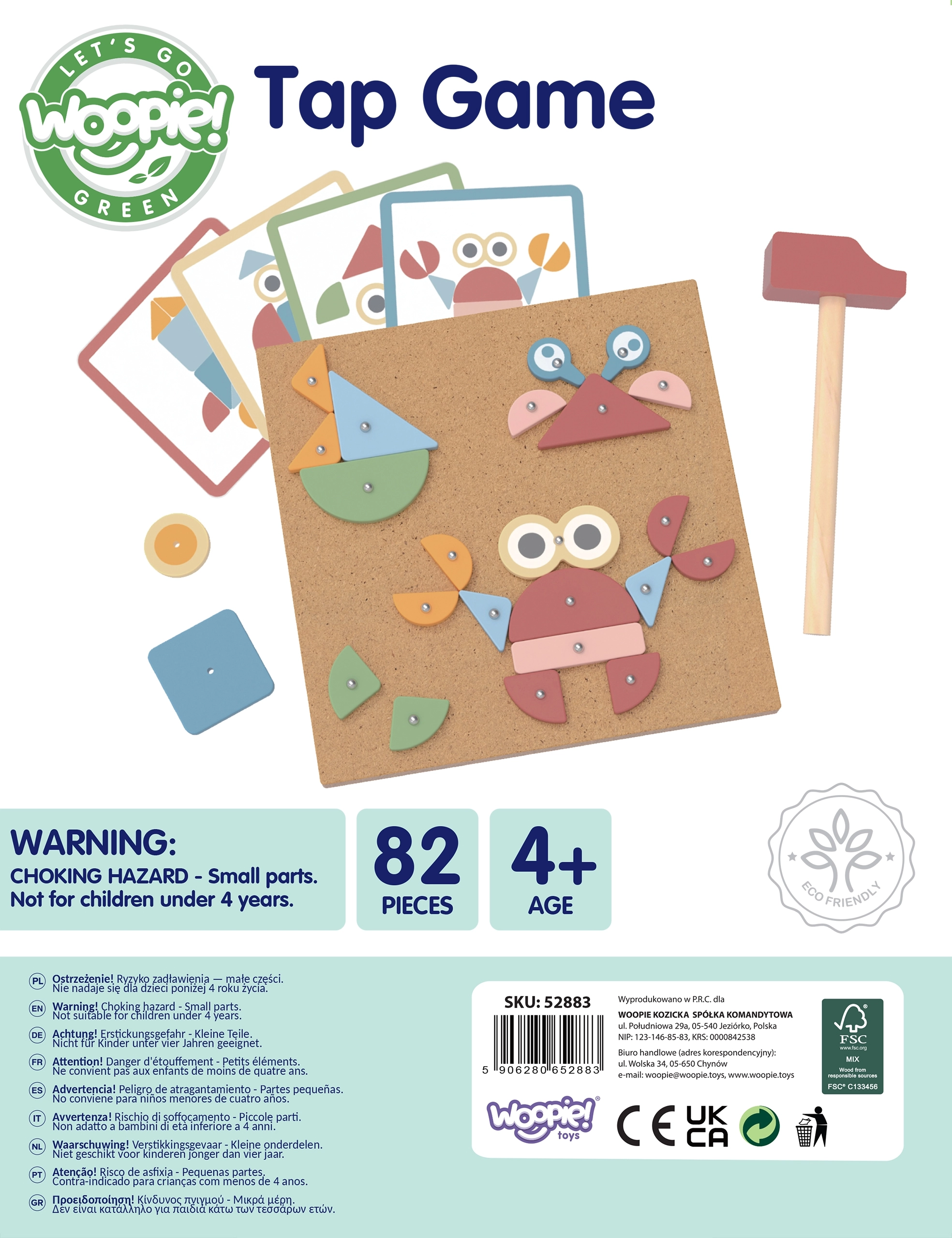Atraskite kūrybinį lavinamąjį žaidimą, kuris įtraukia vaikus į formų ir spalvų pasaulį. Medinė kaladėlių vėrimo lenta WOOPIE GREEN leidžia dėlioti paveikslėlius pagal šablonus ir kurti savo kompozicijas. Dėl saugių, apvalintų elementų ir tvirtos kamštinės lentos žaidimas yra ir smagus, ir patvarus.