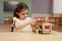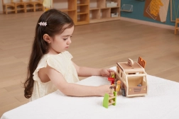 Tvirtas medis, lygūs kraštai ir atsparūs atspaudai užtikrina saugų ir ilgalaikį žaidimą vaikams nuo 3 metų.