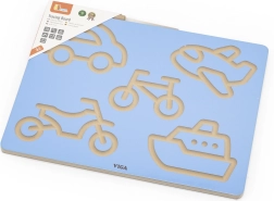 Atraskite smagų kelią į pirmuosius brūkšnius ir raides. Medinė VIGA lentelė su transporto priemonių motyvais veda vaikus prie sklandžių rankos judesių, tinkamo spaudimo ir krypties. Treniruočių procesas vyksta natūraliai per žaidimą – kartotinis griovelių vedžiojimas skatina susikaupimą ir rankos užtikrintumą.