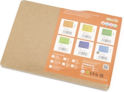 - Maloni medžiaga: kokybiška mediena ir rašiklis–stylusas pakartotiniam naudojimui be netvarkos.