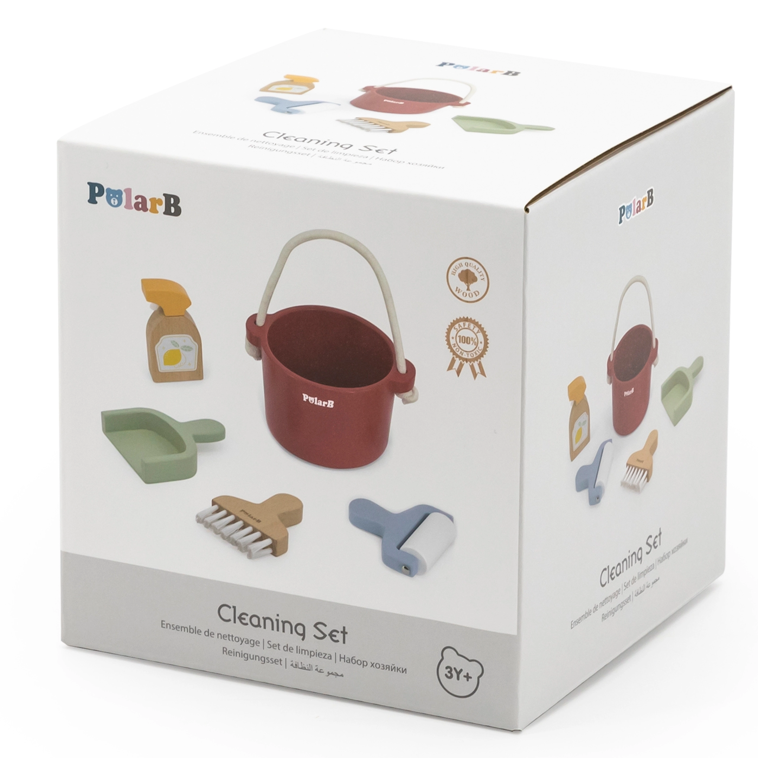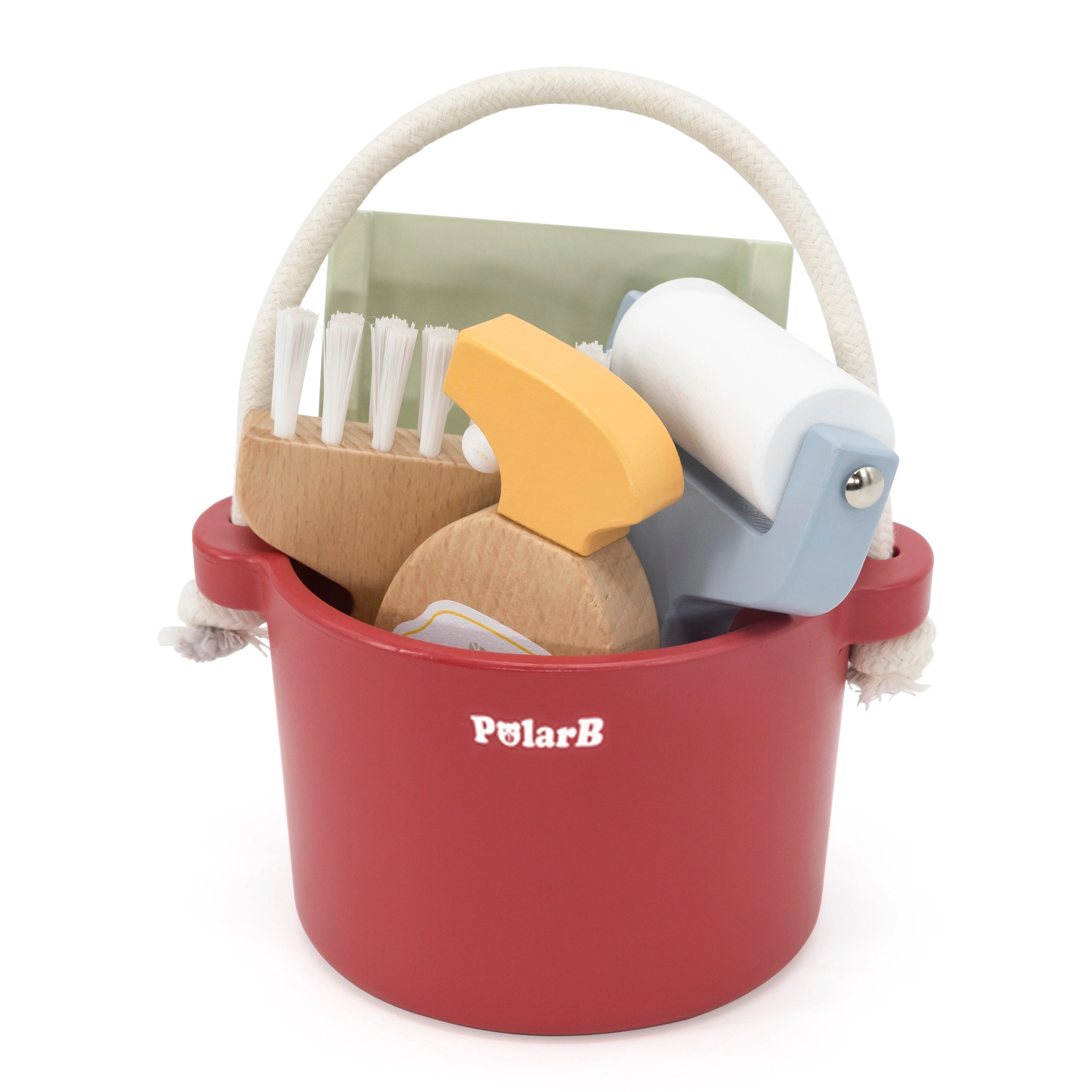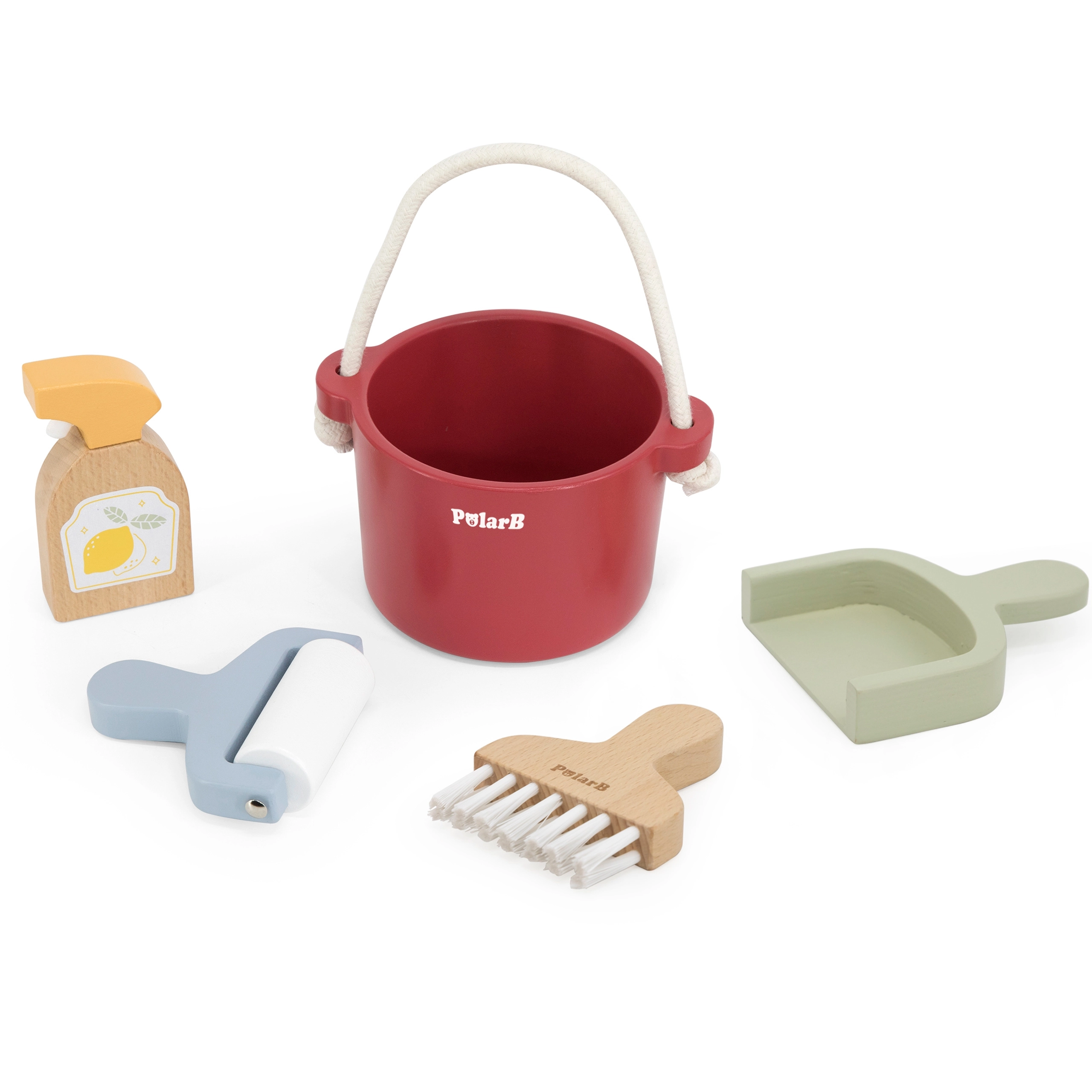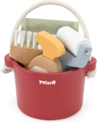 Padovanokite vaikams džiaugsmą iš vaidmenų žaidimų su mediniu valymo rinkiniu POLARB. Kibiras su patvaria virvine rankena taip pat yra sumani vieta patogiam laikymui visų įrankių. Mediniai komponentai malonūs liesti, ilgaamžiai ir vizualiai patrauklūs dėl švelnių pastelinių atspalvių.