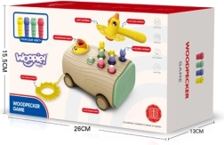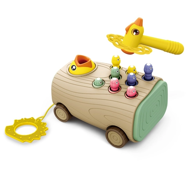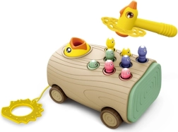 Šis interaktyvus žaislas auga kartu su vaiku: nuo pirmųjų žingsnių kaip tempiamas vėžimėlis su sklandžiu riedėjimu, per kirmėlyčių kalimą saugiu plaktuku, iki magnetinio gaudymo paslėptus elementus pagaunant paukšteliu su magnetu. Skatina susikaupimą, kantrybę ir jutiminį suvokimą.