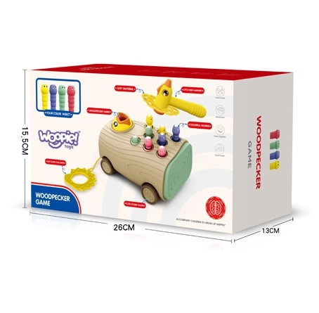 - Turtinga komplektacija: vėžimėlis/„rąstas“, 8 kirmėlytės, plaktukas su dangteliu, rankena ir virvelė