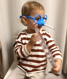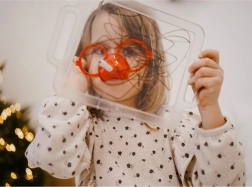 - Pirmasis žaidėjas užsideda specialius akinius su flomasteriu.
