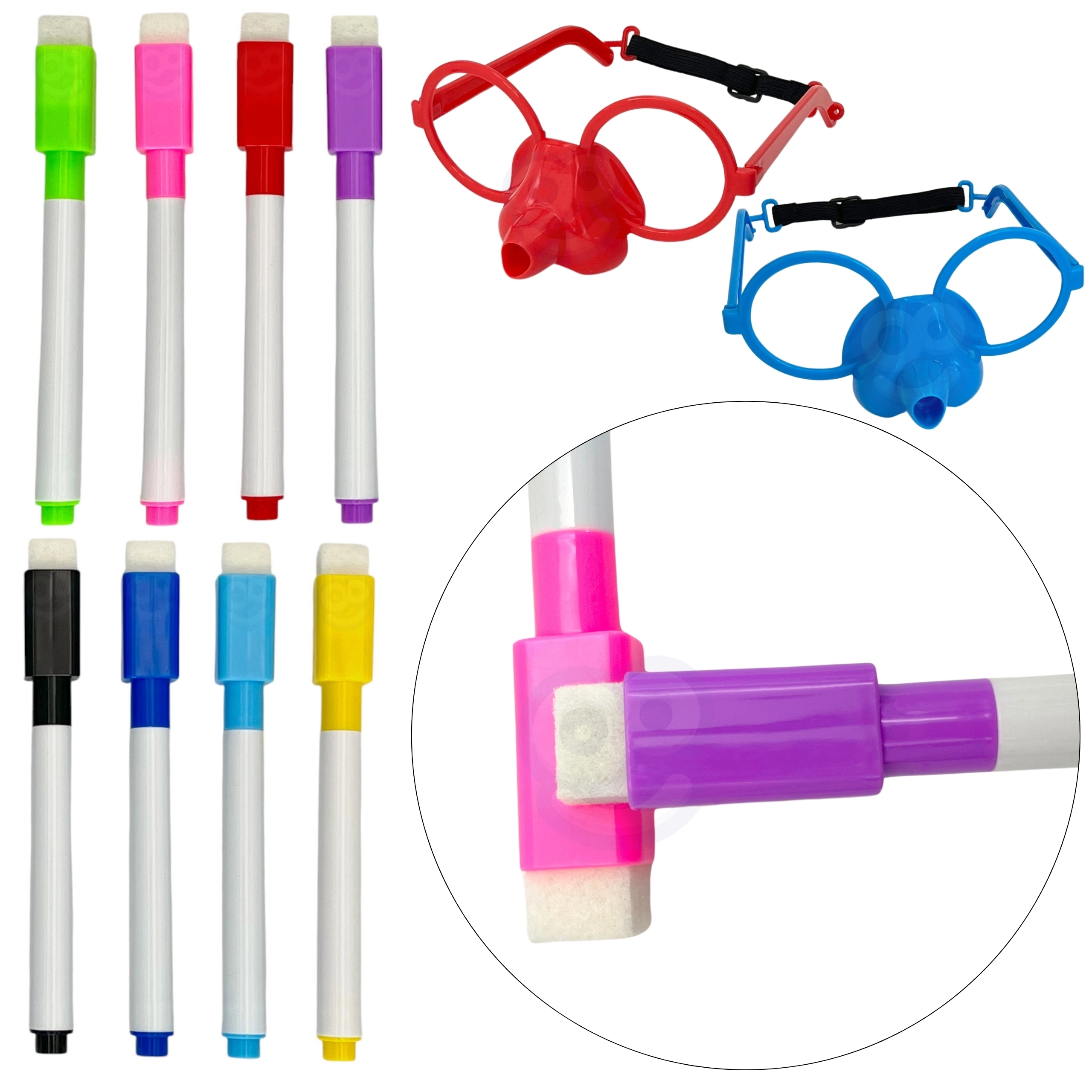 - 8 flomasteriai su trintuku nuvalymui.