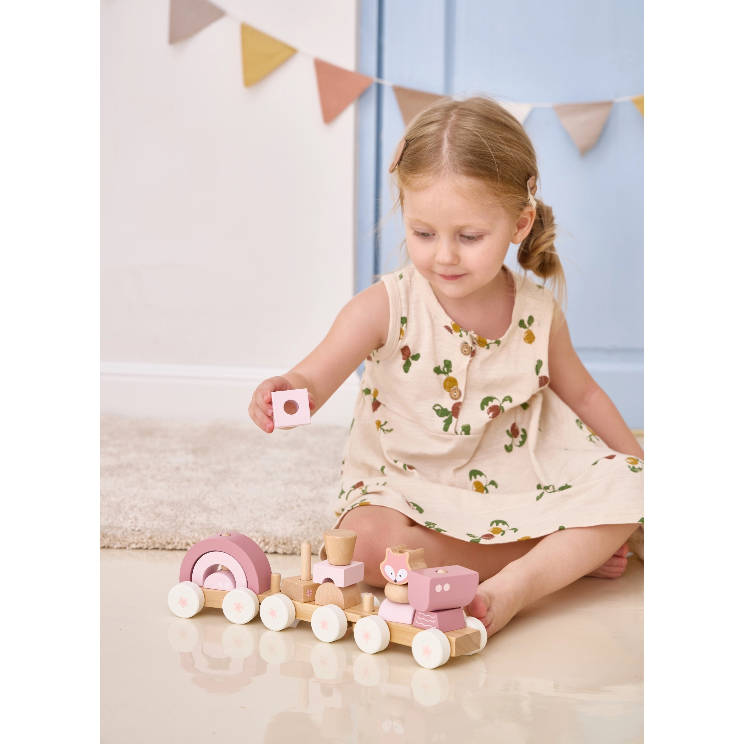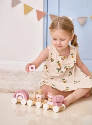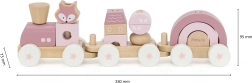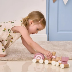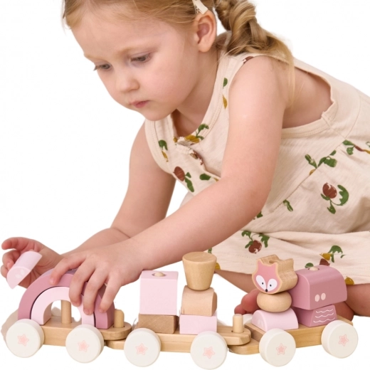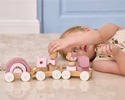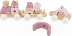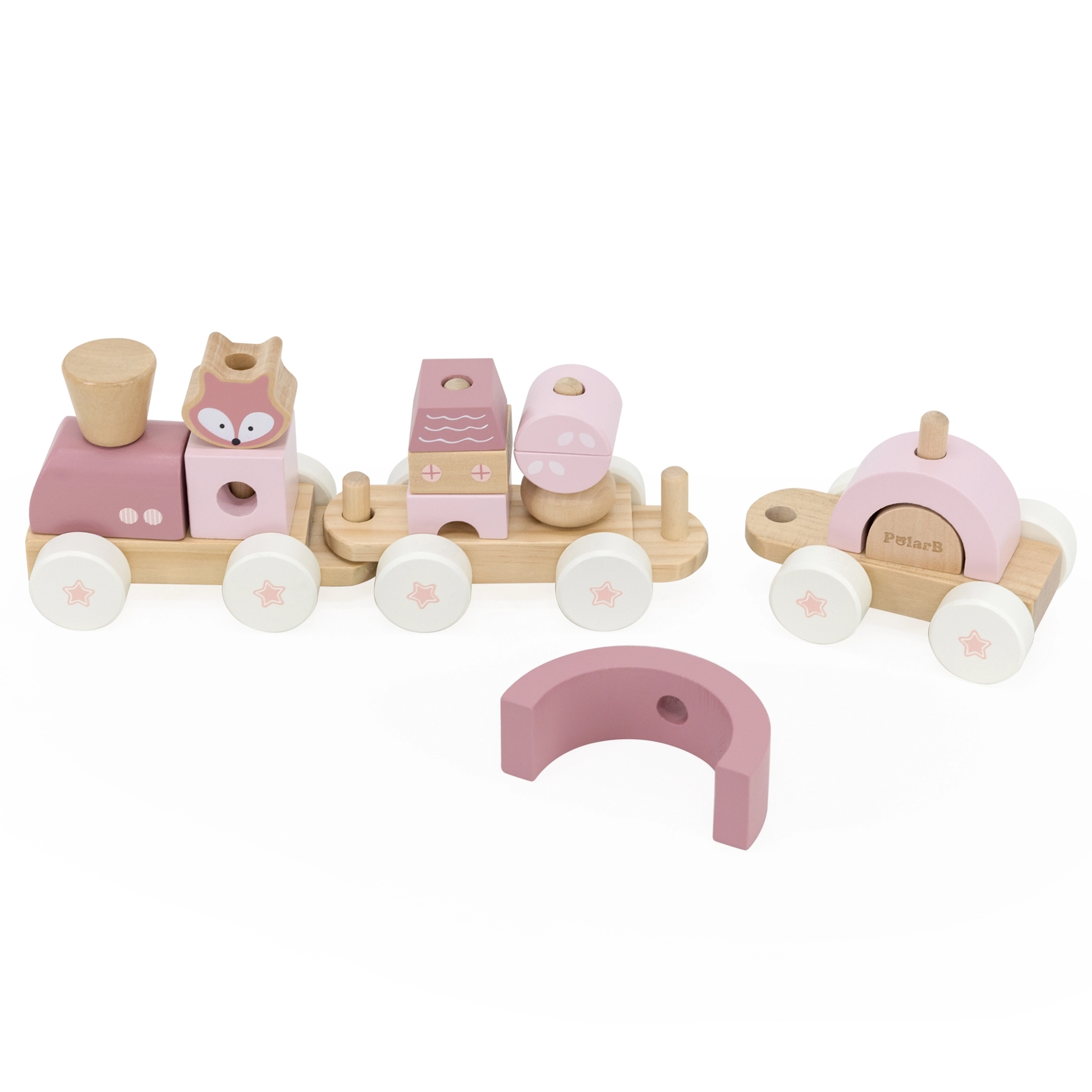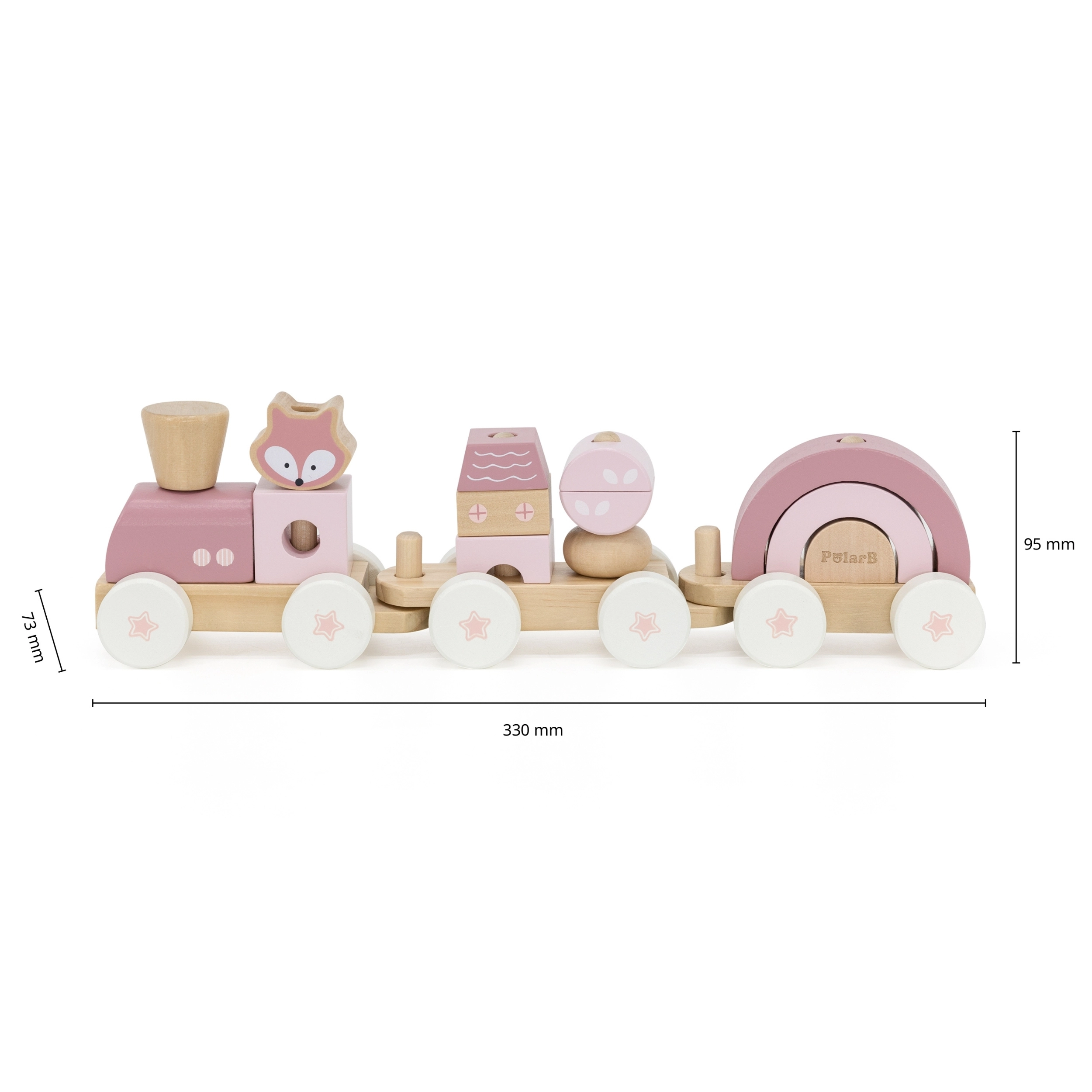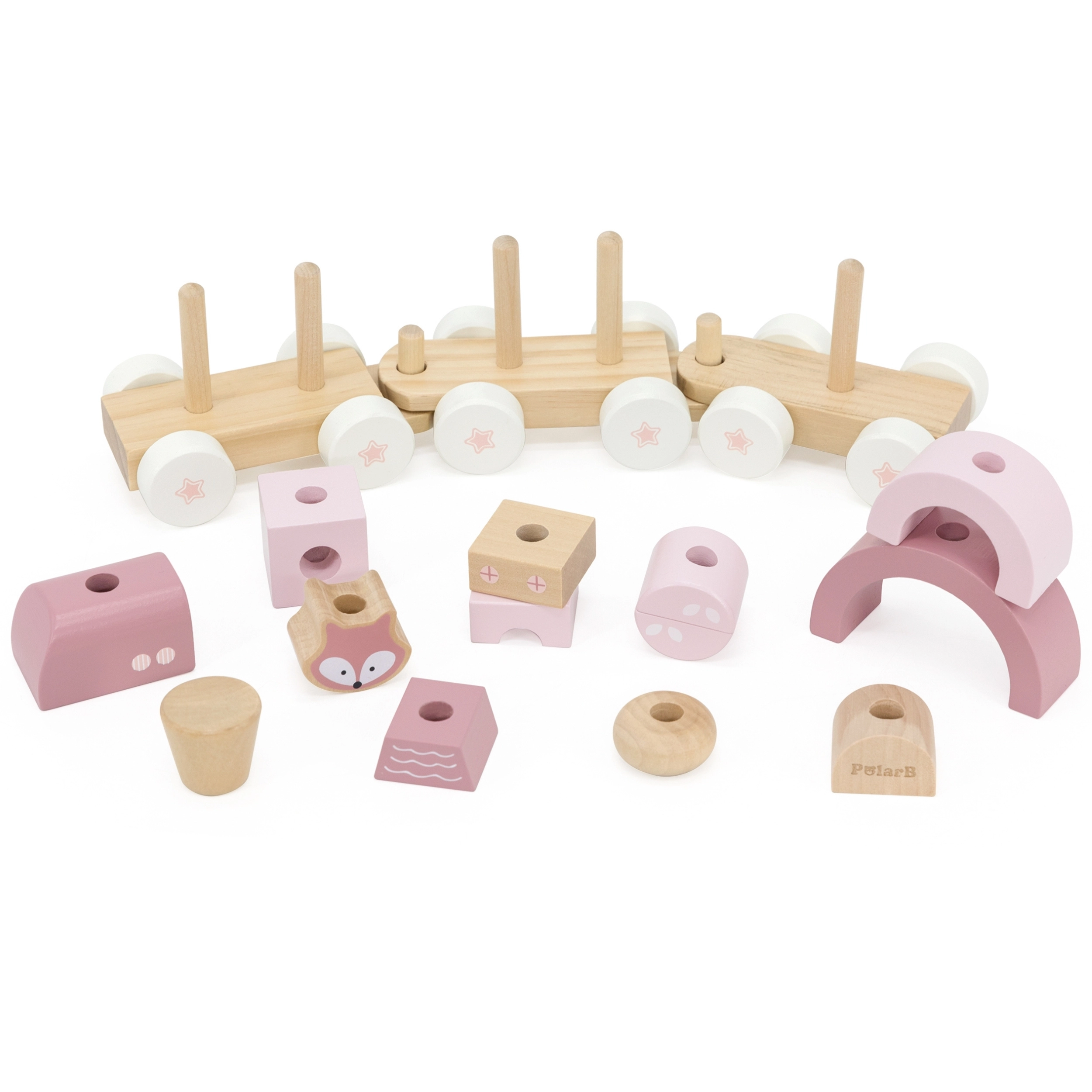 Mielas rožinis medinis traukinukas iš PolarB serijos, prekės ženklo Viga, pradžiugins kiekvieną vaiką. Jį sudaro 3 vagonai ir 14 kaladėlių įvairių formų, kurias galima laisvai derinti ir dėlioti. Dėl švelnių pastelinių spalvų, saugaus medinio apdirbimo ir malonių formų tai idealus žaislas smulkiajai motorikai, koordinacijai ir kūrybiškumui ugdyti nuo 18 mėnesių.