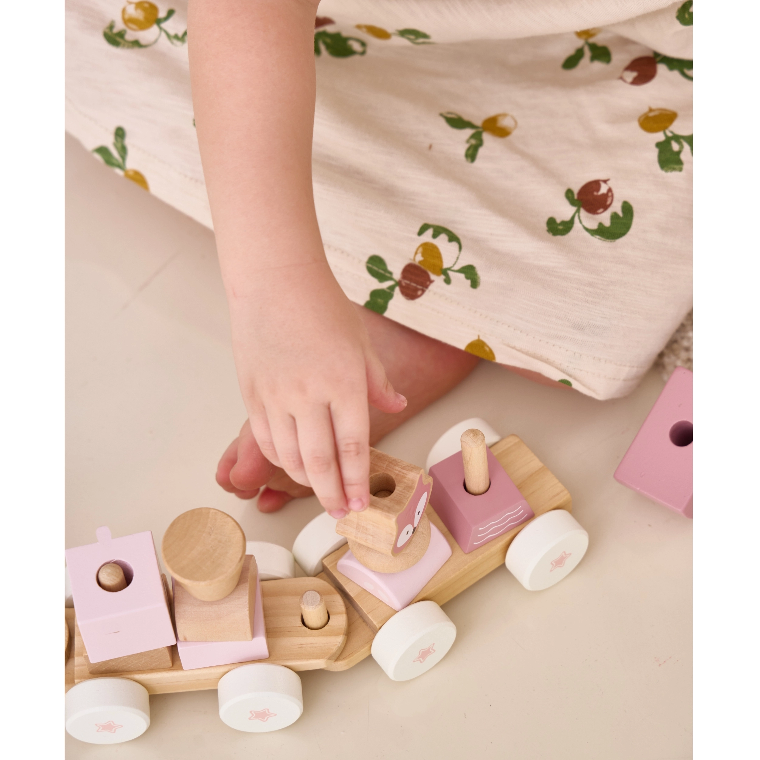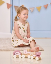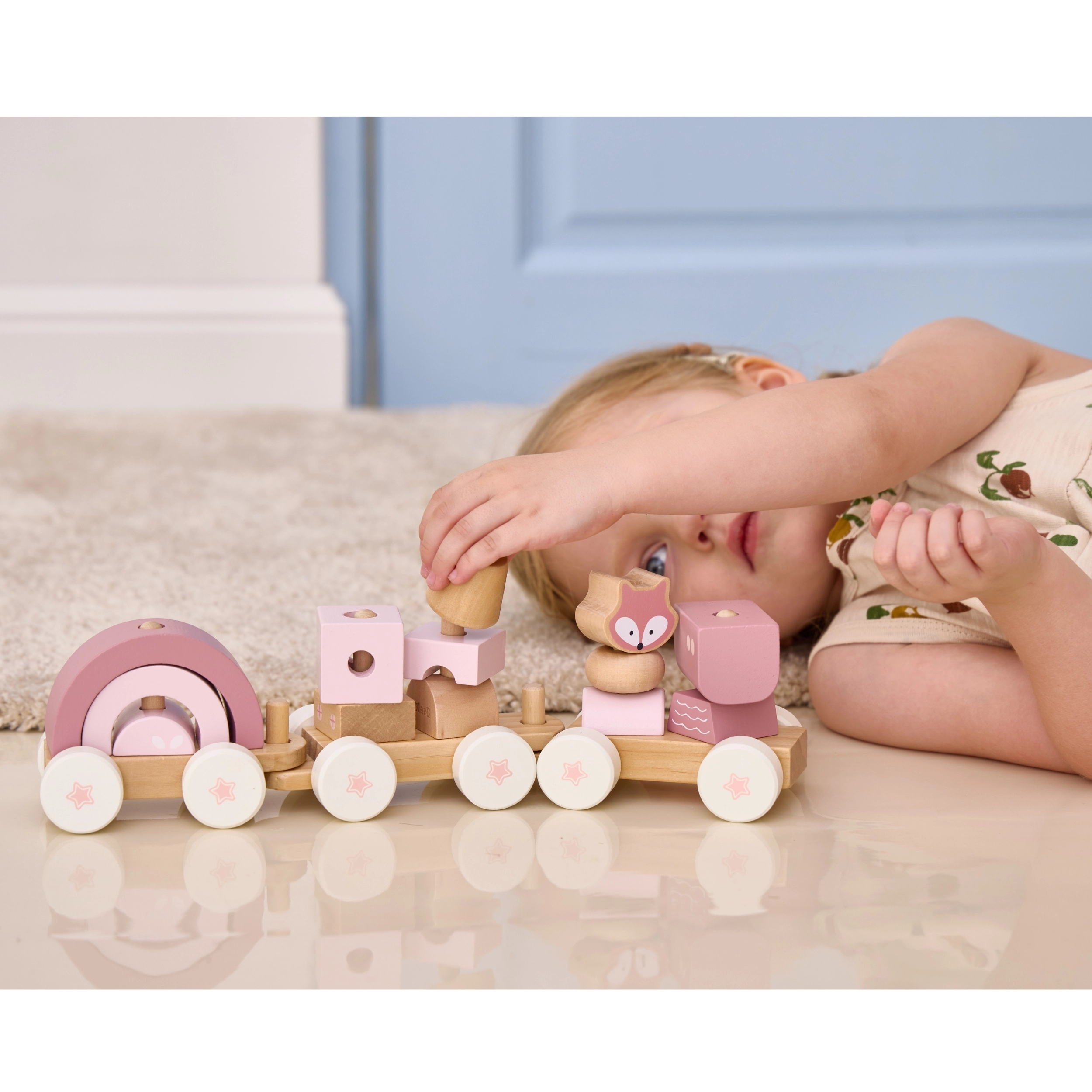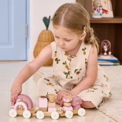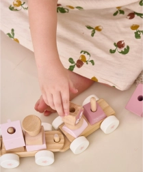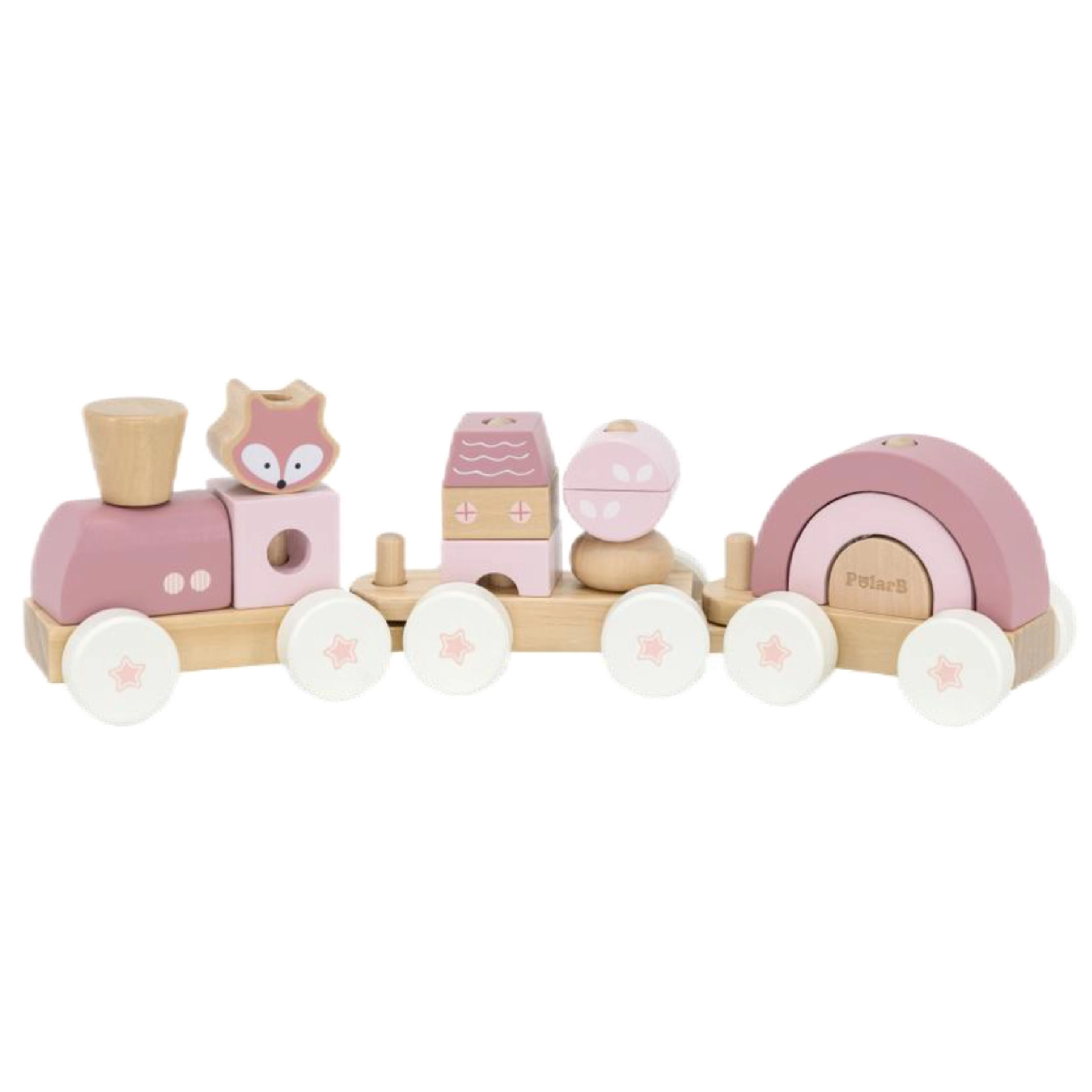 Medinis traukinukas PolarB švelnių rožinių ir natūralių atspalvių suteikia begalę žaidimo galimybių. Vaikai gali jungti vagonus, statyti originalias kaladėlių kombinacijas arba žaisti su atskiromis detalėmis pavieniui. Patogios formos gerai telpa mažose rankytėse ir skatina miklumą bei fantaziją.