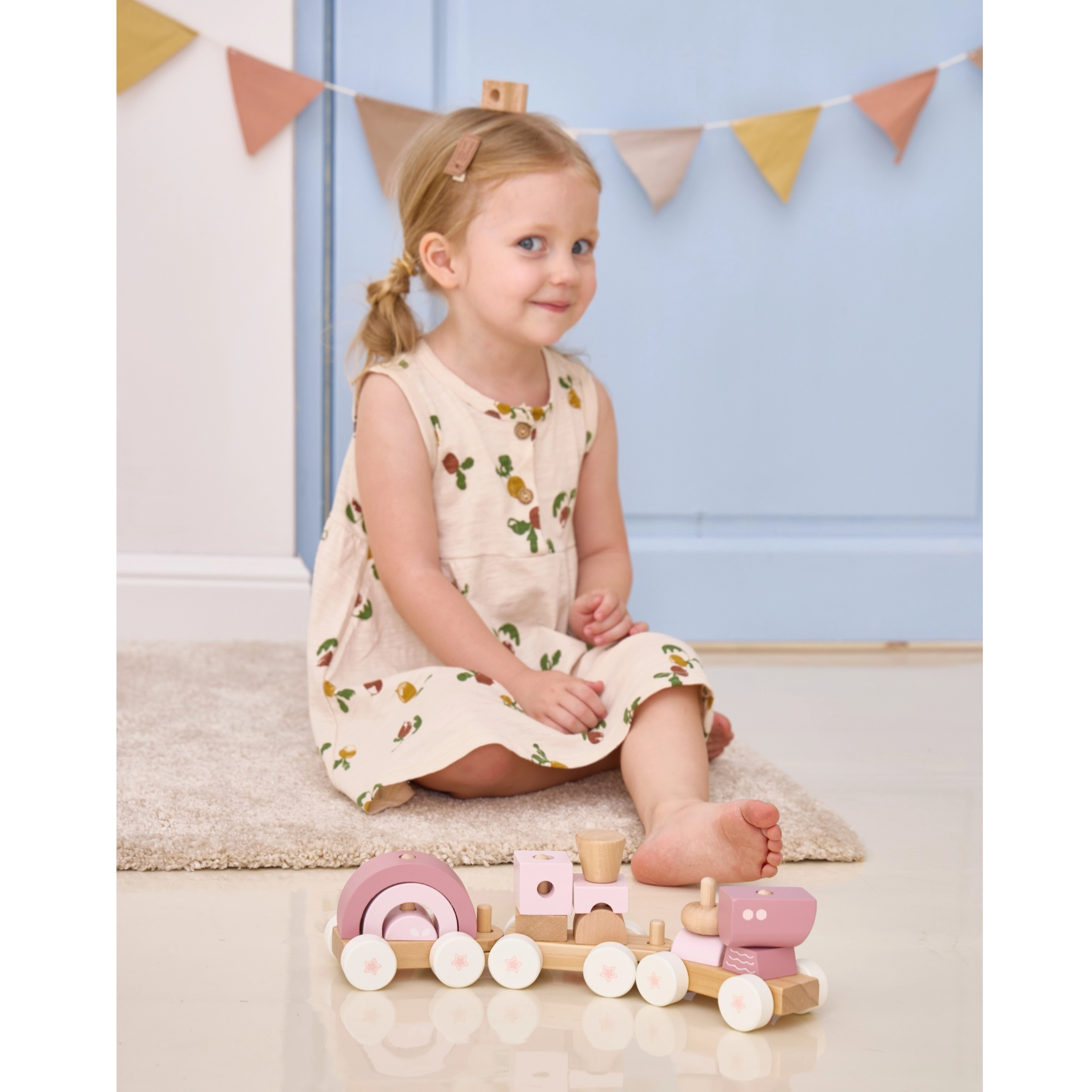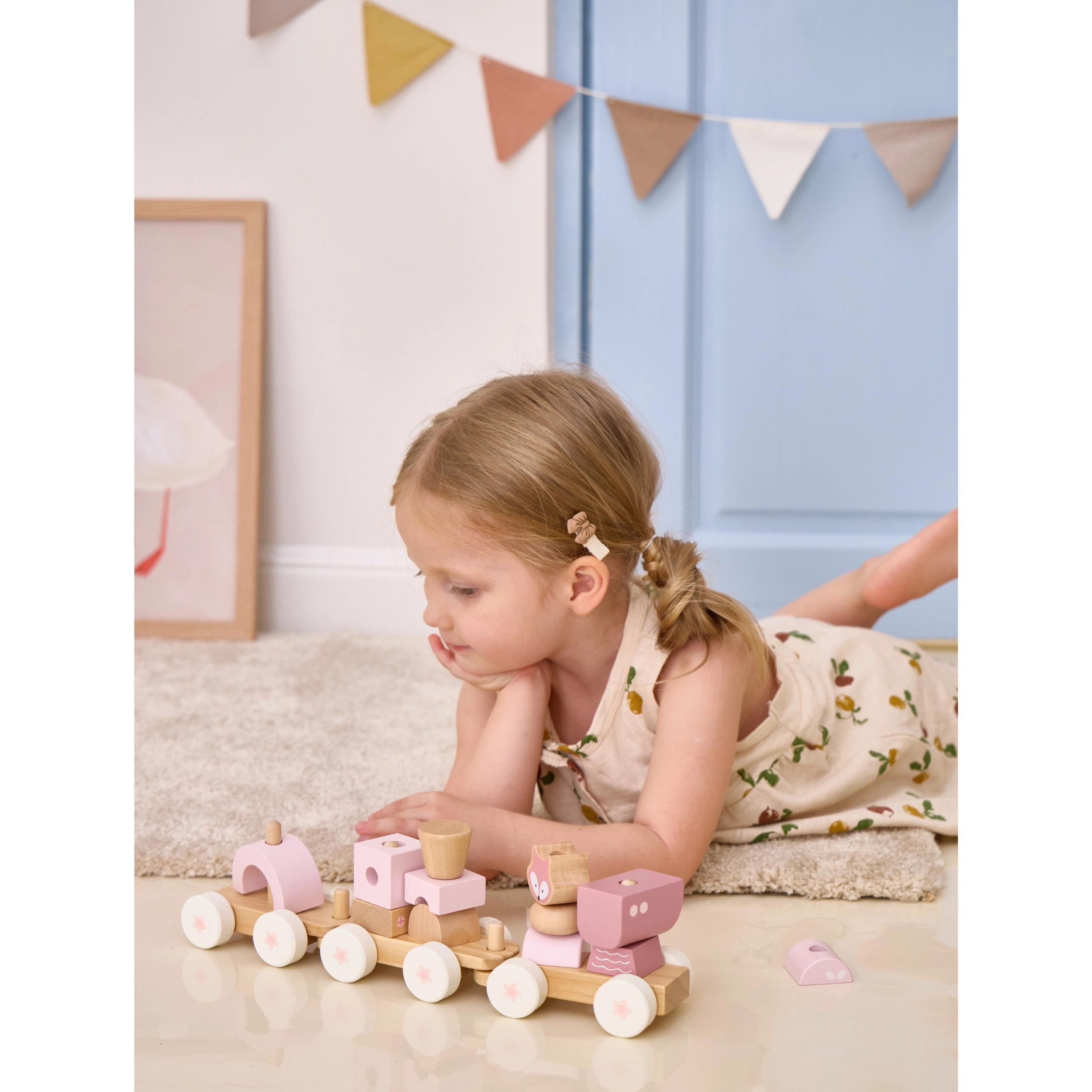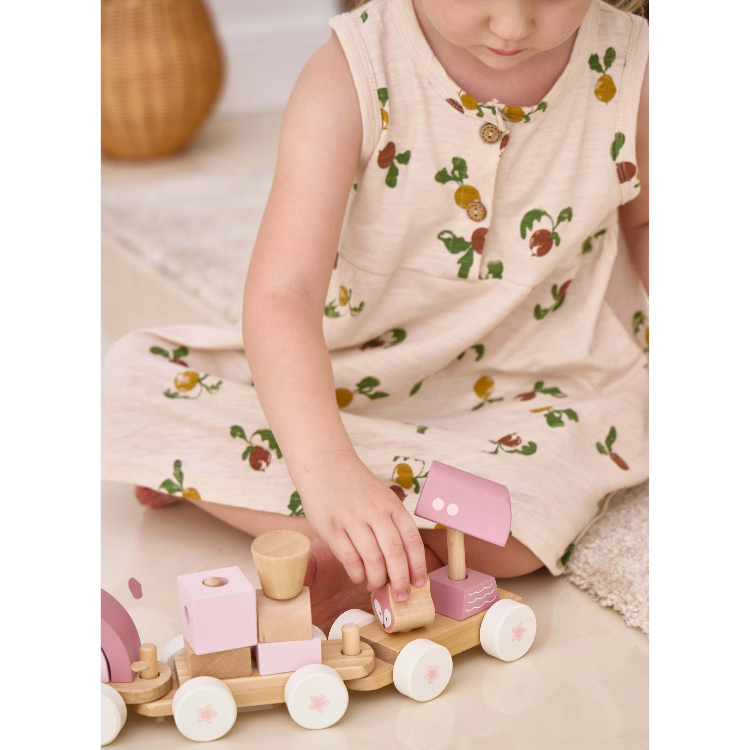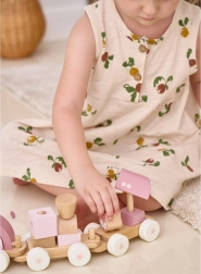 Medinis traukinukas PolarB švelnių rožinių ir natūralių atspalvių suteikia begalę žaidimo galimybių. Vaikai gali jungti vagonus, statyti originalias kaladėlių kombinacijas arba žaisti su atskiromis detalėmis pavieniui. Patogios formos gerai telpa mažose rankytėse ir skatina miklumą bei fantaziją.