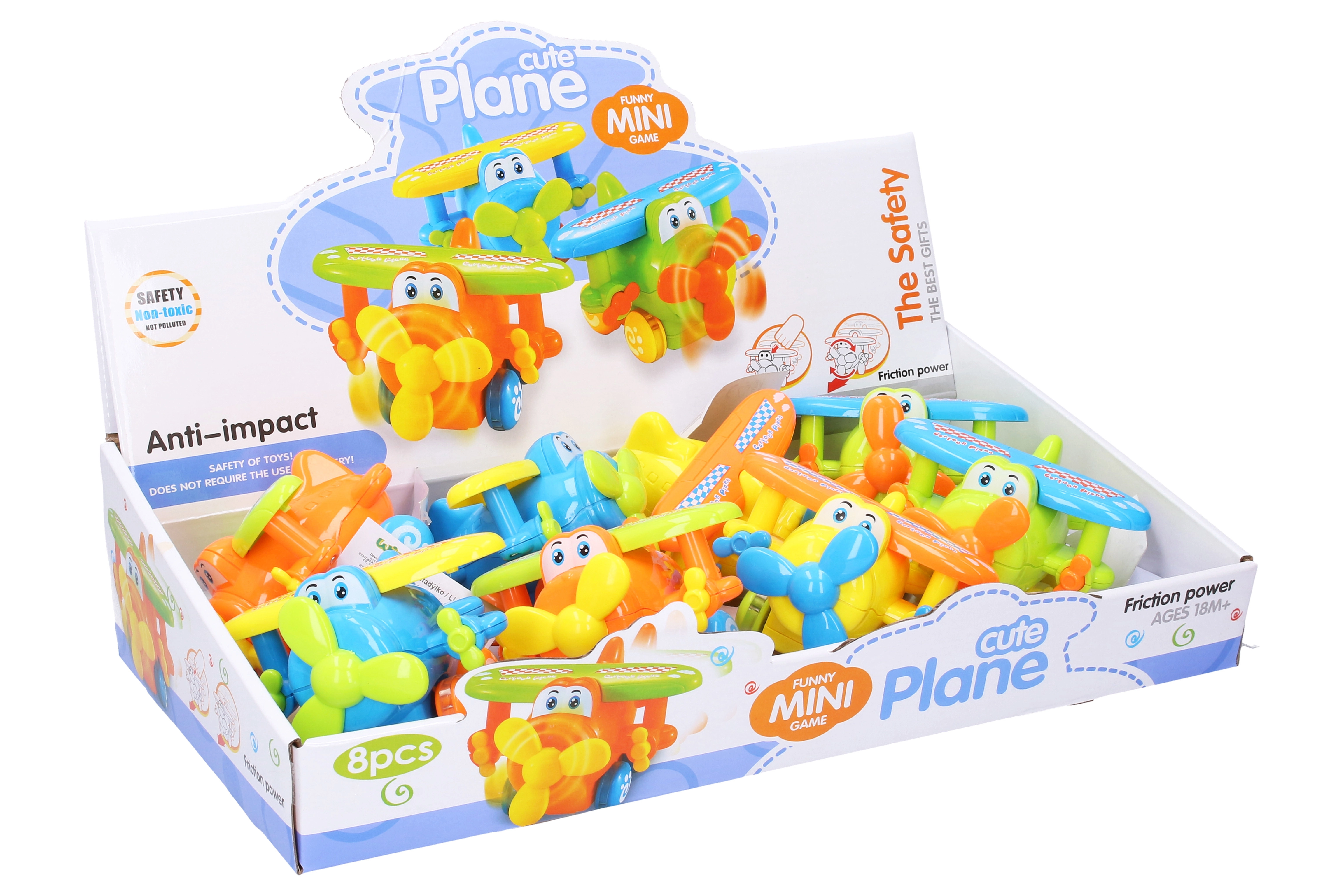 Žavingas inercinis lėktuvas – puikus pirmasis transporto žaislas. Dėl paprasto, baterijų nereikalaujančio veikimo principo po įtempimo juda pats, lavina vaikų motoriką ir vaizduotę. Tinka patiems mažiausiems dėl apvalintų formų ir tvirto atlikimo.