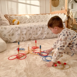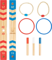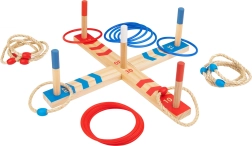 Medinis žaidimas RING TOSS – klasika, kuri pralinksmins ir vaikus, ir suaugusiuosius. Tikslas – mėtyti žiedus ant kaiščių su skirtingomis taškų vertėmis ir surinkti kuo daugiau taškų. Dėl kompaktiškos konstrukcijos lengvai pasiimsite į sodą, pikniką ar vaikų kambarį.