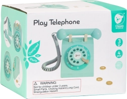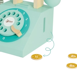Šis klasikinio stiliaus medinis telefonas vaikams suteikia autentišką žaidimo patirtį. Dėl sukamasis numerių rinkiklio, ragelio su virvele ir monetų dėjimo žaidimo vaikai mokosi vesti pokalbius, lavina socialinius įgūdžius ir treniruoja rankų–akių koordinaciją. Be baterijų – girdimas malonus mechaninis skambutis.