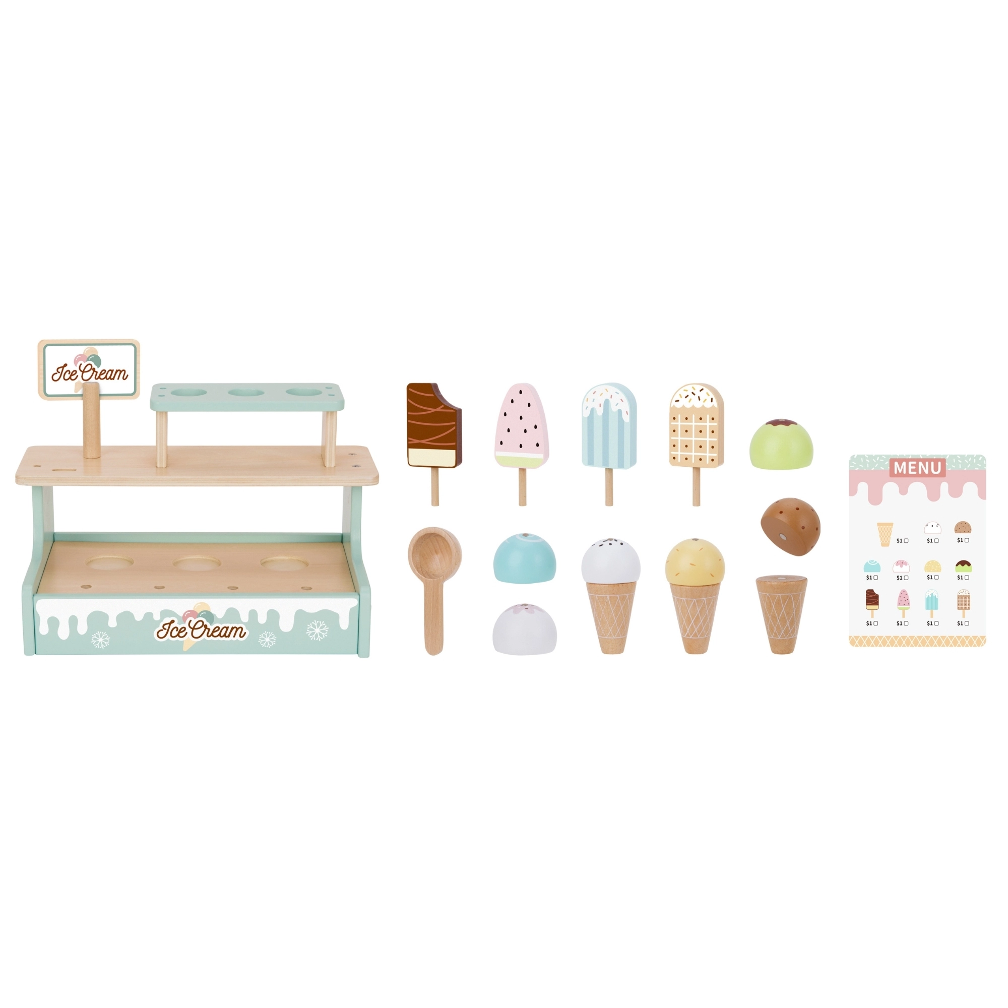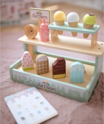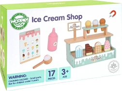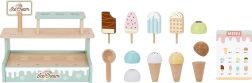Tapkite ledų pardavėju su žavingu mediniu kiosku WOOPIE GREEN. Pastelinis rinkinys iš saugaus medžio siūlo ragelius, rutuliukus ir ant pagaliuko esančius ledus, magnetinį rutuliukų jungimą ir meniu žaidimui parduotuvę. Skatina smulkiąją motoriką, vaizduotę ir vaidmenų žaidimą.