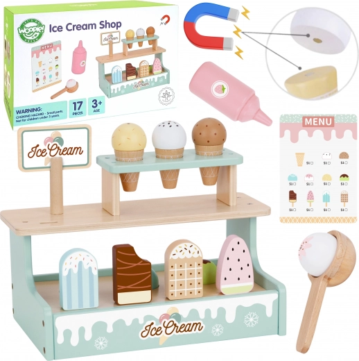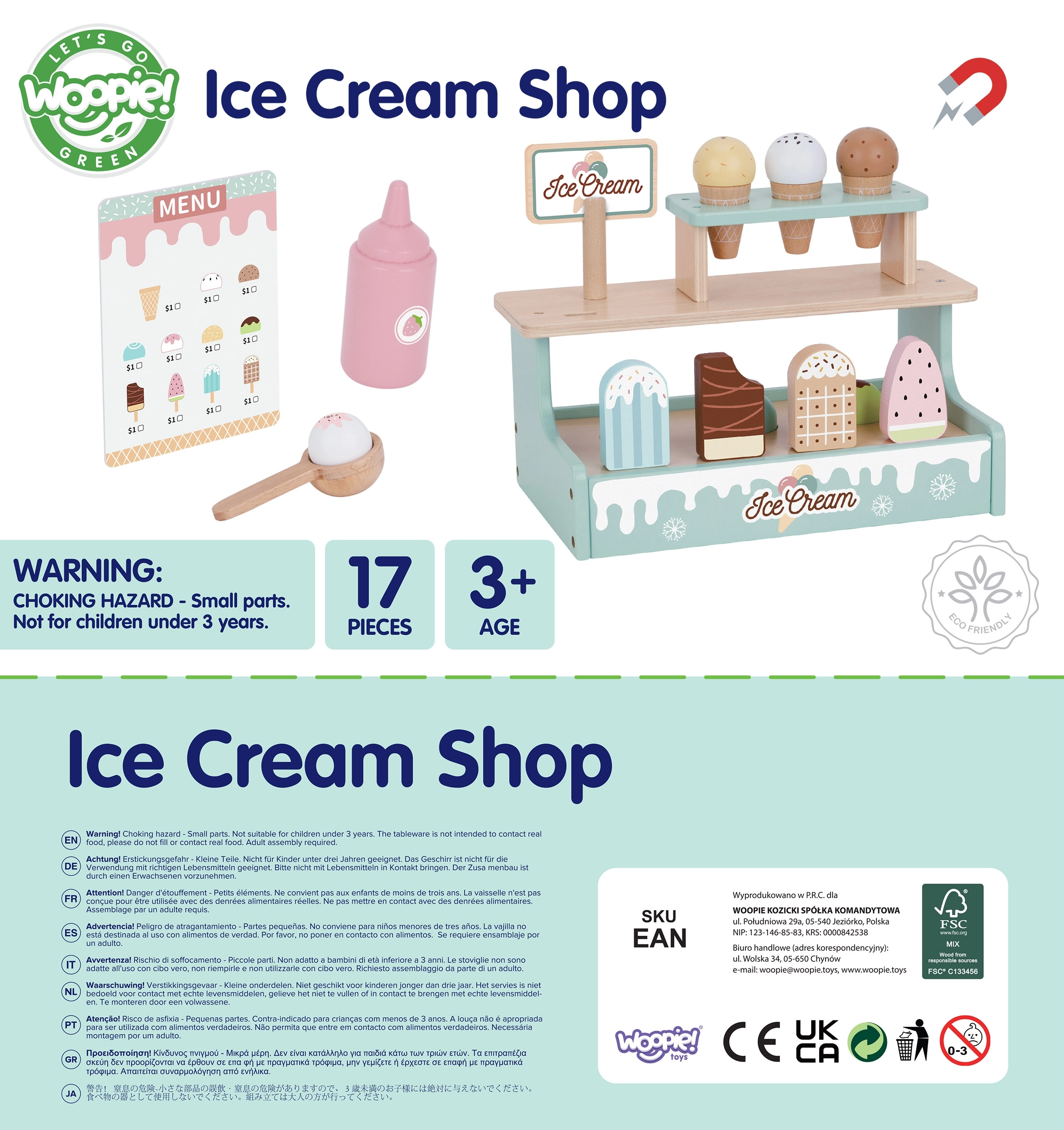 Atraskite parduotuvės žaidimo žavesį su stilingu ledų kiosku WOOPIE GREEN. Vaikai gali patiekti rutulinius ir ant pagaliuko esančius ledus, sluoksniuoti skonius dėl magnetinių rutuliukų ir rinktis iš meniu. Žaidimas lavina akių–rankų koordinaciją, kūrybiškumą ir socialinius įgūdžius aptarnaujant klientus.