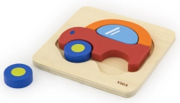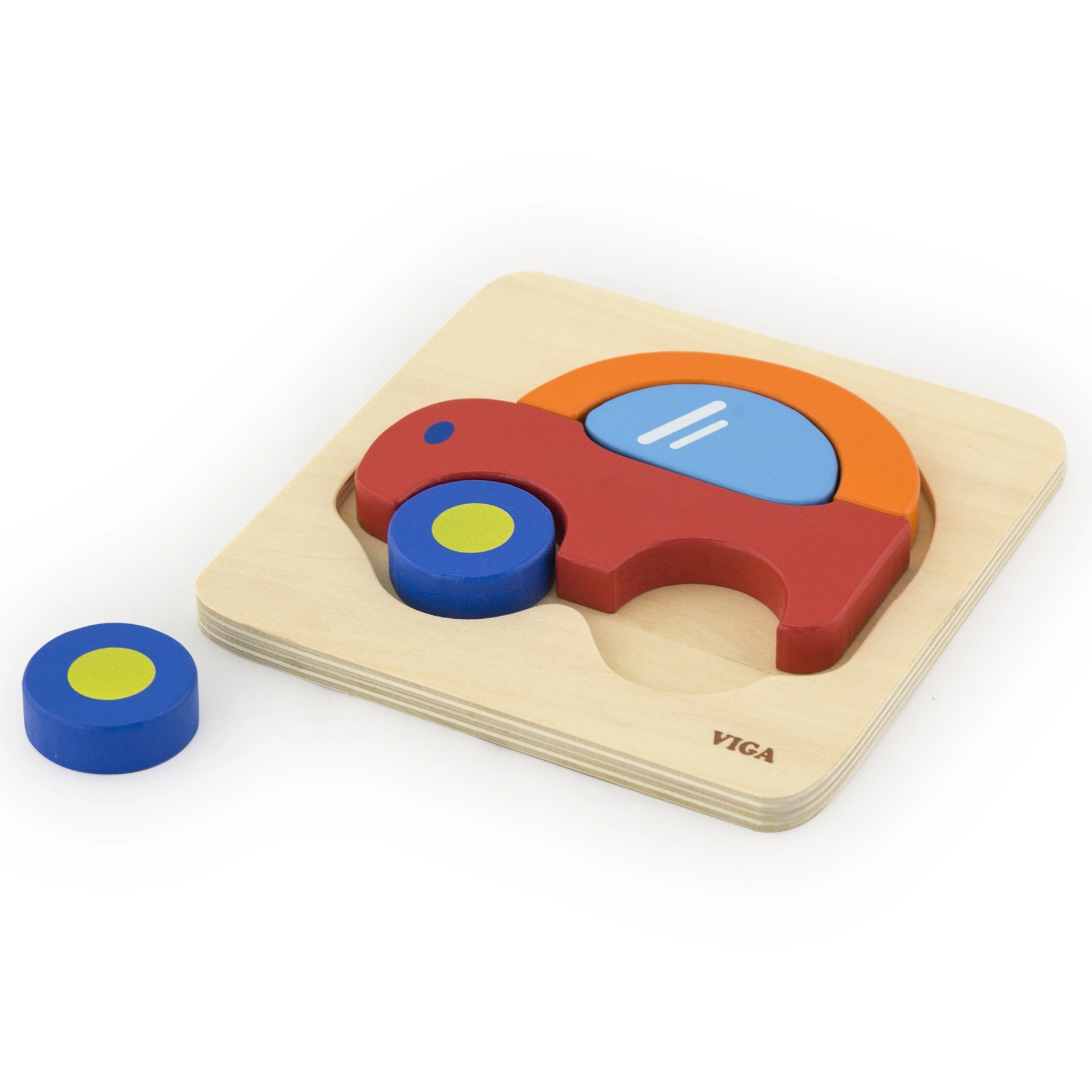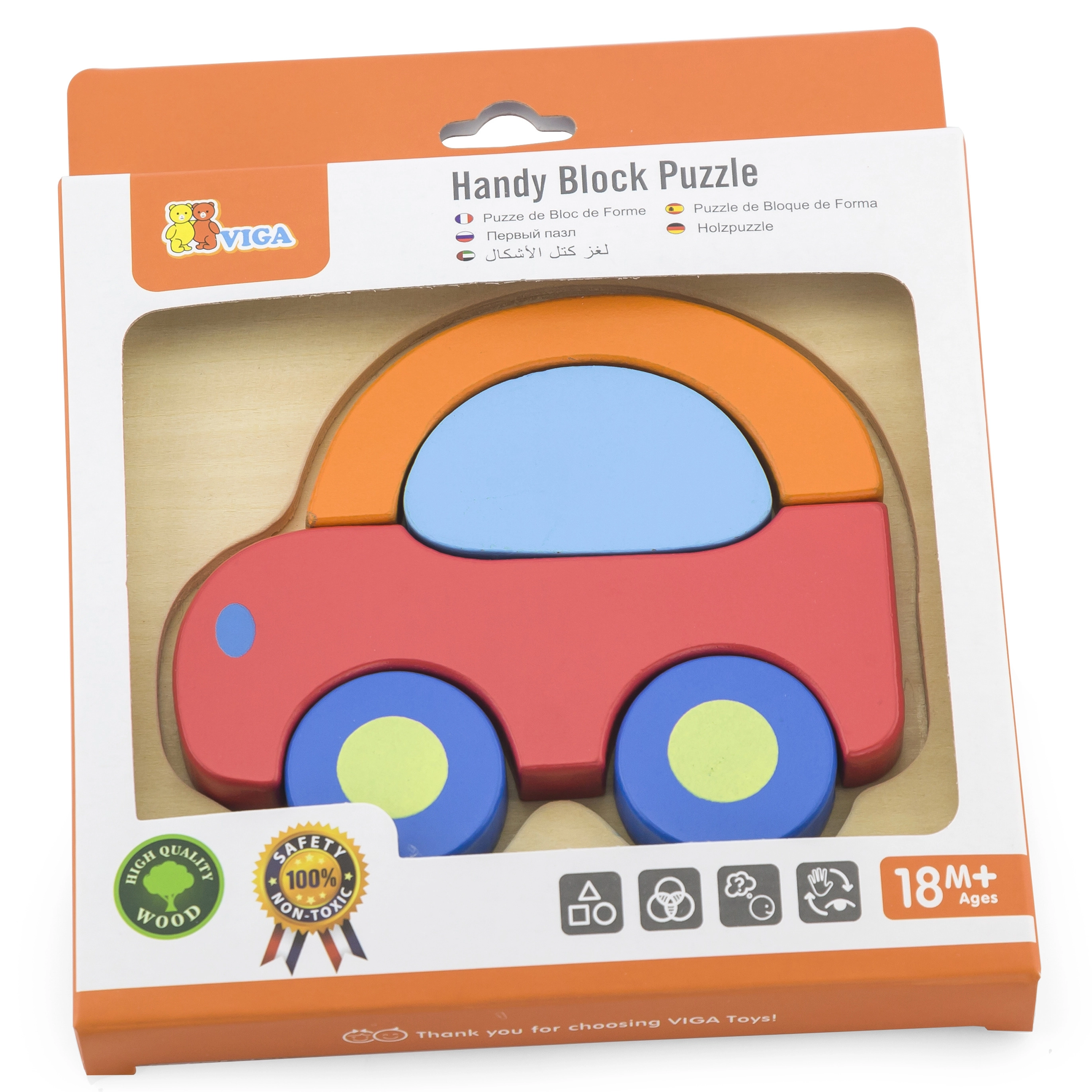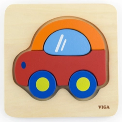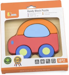 Medinė blokinė dėlionė automobilio formos, VIGA prekės ženklas, pasižymi patvarumu ir ryškiomis spalvomis.