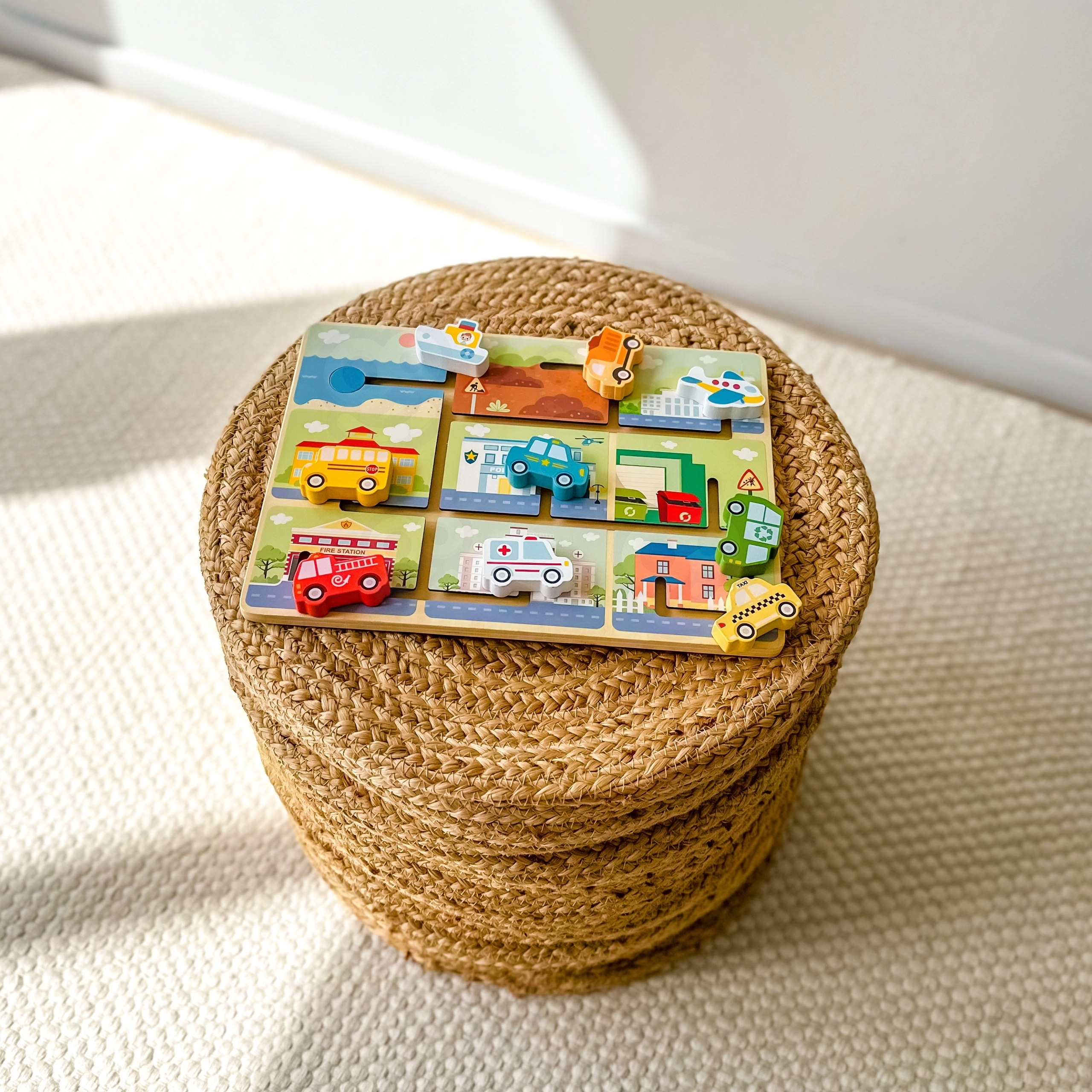 Žaidimas natūraliai lavina smulkiąją motoriką, kantrybę ir problemų sprendimą. Teminės scenos ir ryškios spalvos skatina formų ir spalvų suvokimą bei žodyną – vaikai lengvai įsisavina transporto priemonių pavadinimus ir jų funkcijas mieste.