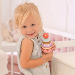 Žiedų dėliojimas ant kūgio padeda vaikams lavinti smulkiąją motoriką ir akių-rankų koordinaciją.