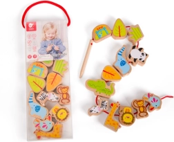 Ši miela vėrimo priemonė sujungia kūrybišką dėliojimą ir vėrimą su mėgstamų gyvūnėlių – pandas, liūto, žirafos ar krokodilo – pažinimu. Vaikai lavina suėmimą, tikslumą ir susikaupimą, kurdami savo zoologijos sodo istorijas. Puiki veikla ramiai, susikaupusiai žaidimų minutei namuose ar kelionėje.