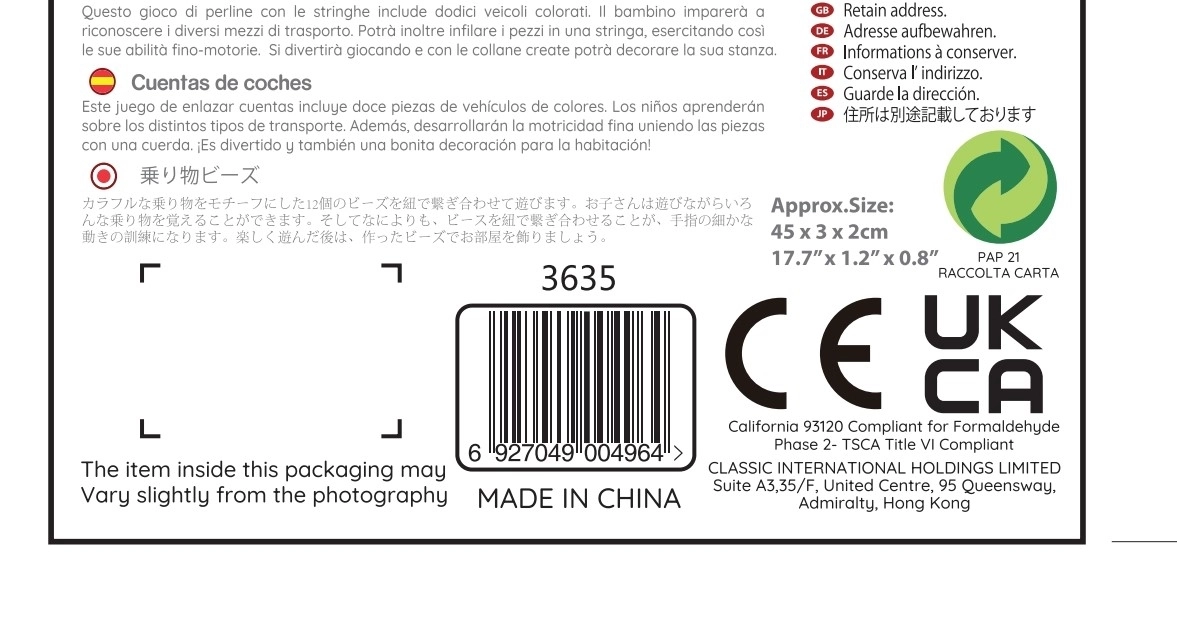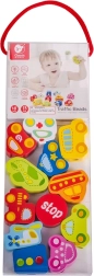 Ryškiaspalvės transporto priemonės ir kelio ženklai supažindina vaikus su kelių pasauliu. Dėliodami karoliukų seką, jie lavina spalvų, formų pažinimą ir pagrindines eismo taisykles.