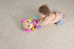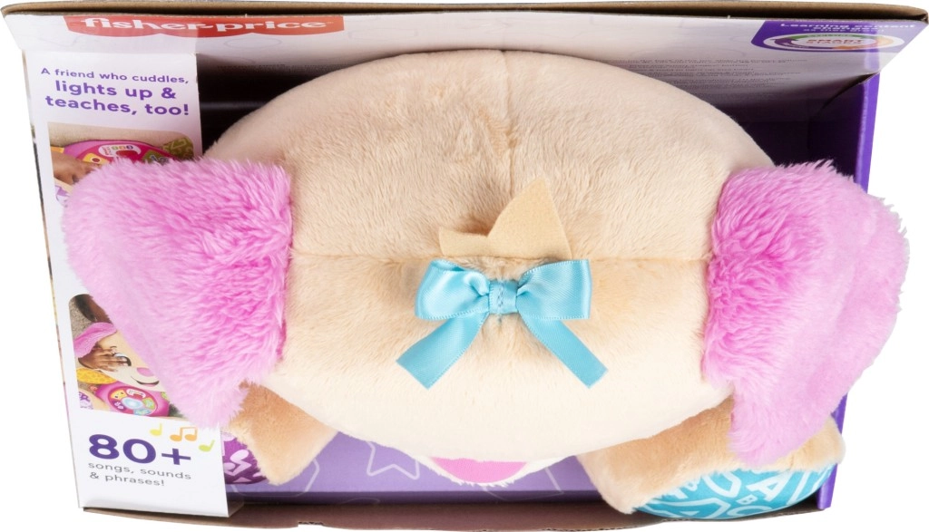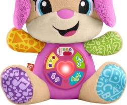 FISHER-PRICE Laugh & Learn Smart Stages Sesytė – tai minkštas apkabinamas draugas ir išmanus lavinamasis žaislas viename. Vaikai nuo 6 iki 36 mėnesių atranda pirmuosius įgūdžius per daineles, švieselę ir lietimo elementus. Paspaudus mygtukus ant pilvuko, užsidega širdelė ir įsijungia dainelės, skaičiai ar spalvos – mokymasis tampa natūralus ir kupinas džiaugsmo.