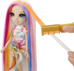 Atrask kūrybišką stilizavimo pasaulį su lėle Rainbow High Amaya. Dėl ultrailgų, lengvai šukuojamų plaukų ir spalvotų kreidelių rinkinio sukursi tiek švelnius pastelinius, tiek ryškius vaivorykštinius sruogelius. Spalvas paprasta išskalauti, todėl gali bandyti vėl ir vėl.