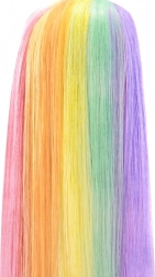Lėlė turi itin ilgus, glotnius plaukus su vaivorykštiniais sruogomis, kurie lengvai šukuojami, pinami ir formuojami į įvairius stilius – nuo bangų ir kasų iki ryškių spalvinių linijų.
