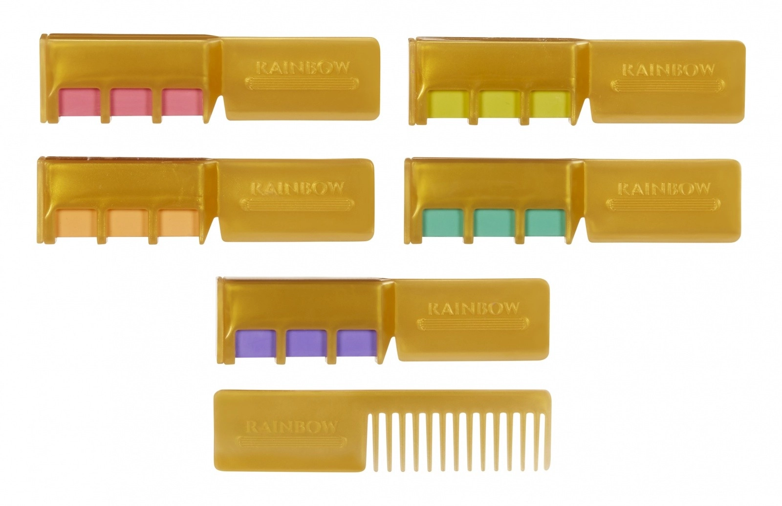 Penki patogūs šukų formos aplikatoriai su spalvotomis kreidelėmis leidžia akimirksniu suteikti spalvų efektus. Spalvą lengva nuplauti vandeniu, todėl gali eksperimentuoti be apribojimų.