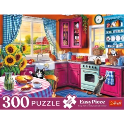 EasyPiece – Rytas virtuvėje siūlo jaukų ankstyvo ryto virtuvės šurmulio motyvą. Didesnės, aiškiai matomos detalės užtikrina patogų ir intuityvų dėliojimą, tad jis patiks net tiems, kurie tik pradeda pažintį su dėlionėmis.