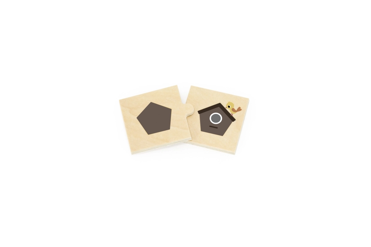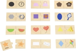 Šis kokybiškas medinis rinkinys sukurtas mažiesiems tyrinėtojams nuo 18 mėnesių. Dviejų dalių kortelės su iliustracijomis ir atitinkamais „šešėliais“ skatina vaikus mąstyti, lyginti ir teisingai priderinti. Dėl ryškių spalvų ir patvaraus apdirbimo vaikai greitai pamėgs šį žaidimą, o tėvai įvertins jo edukacinę naudą.