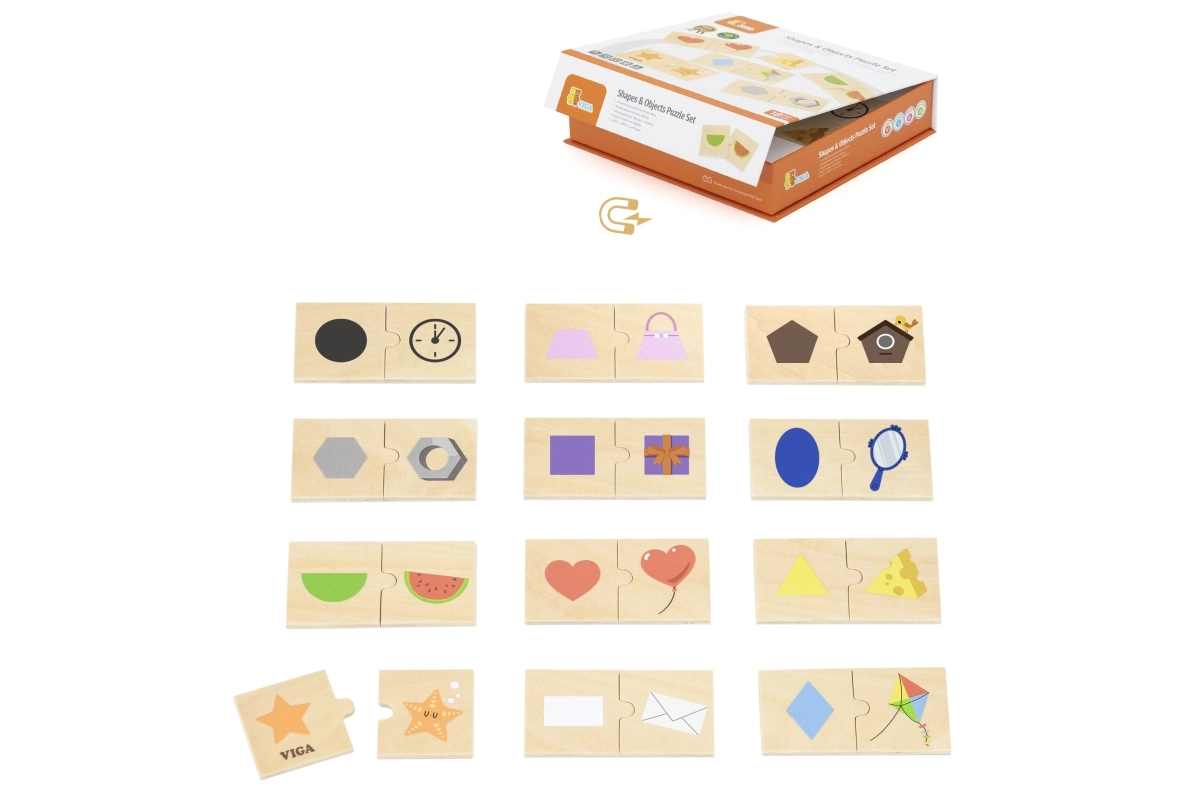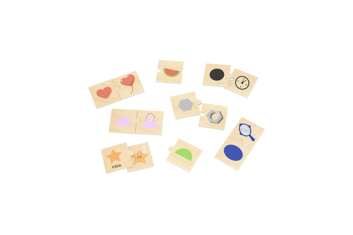 Atraskite išmaniąsias medines VIGA dėliones, kurios jungia pramogą ir mokymąsi. Vaikai dėlioja paveikslėlių poras ir jų „šešėlius“, taip natūraliai lavindami formų atpažinimą, smulkiąją motoriką ir koncentraciją. Ryškios iliustracijos patraukia iš pirmo žvilgsnio ir skatina žodyno plėtrą bei ankstyvąją logiką.