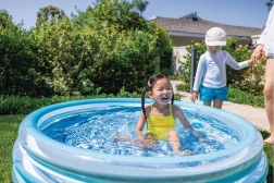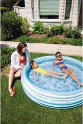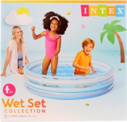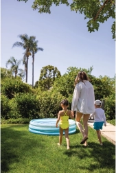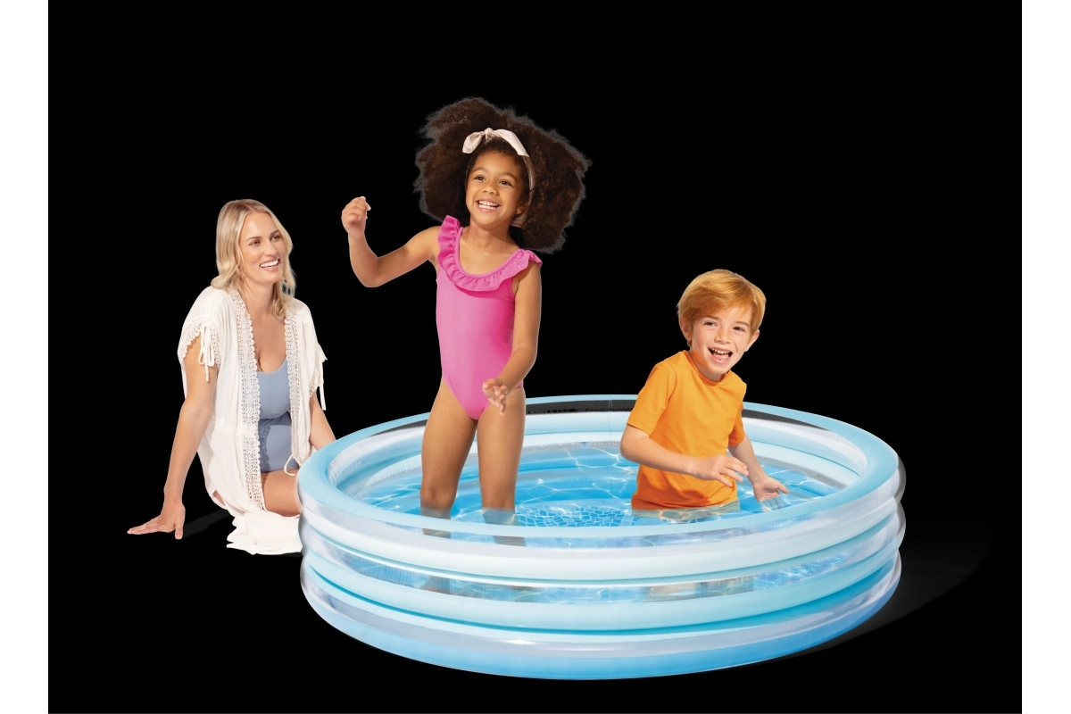 Pradžiuginkite vaikus vasariškais vandens žaidimais! Šis pripučiamas baseinas, kurio skersmuo 147 cm ir aukštis 33 cm, suteikia saugią maudynių erdvę mažiesiems vandens mėgėjams nuo 2 metų. Dėl trijų oro kamerų, minkšto neslystančio dugno ir lengvos instaliacijos jis idealiai tinka sodui ar kiemui.