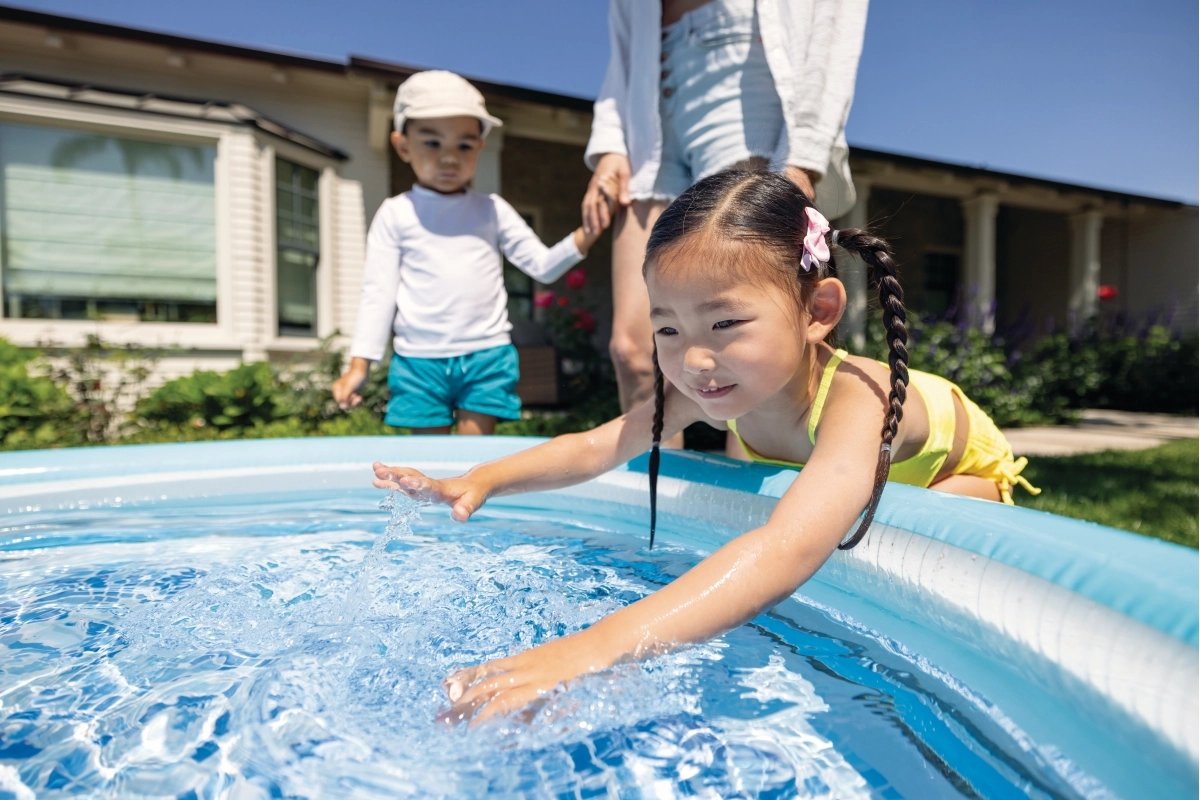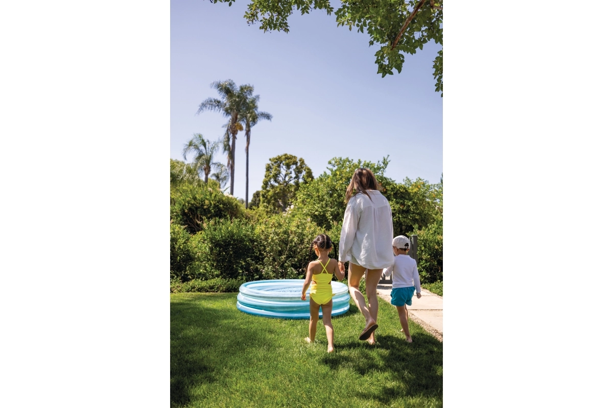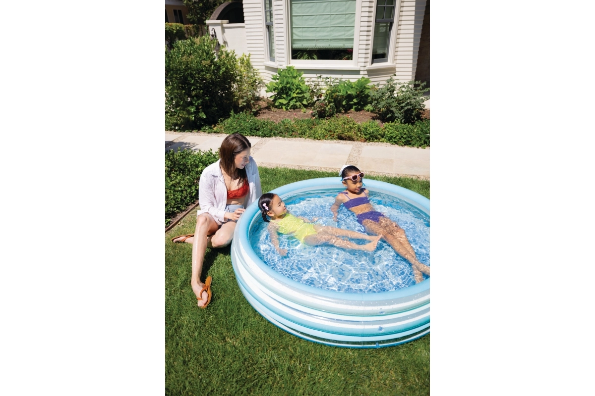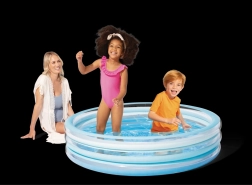 Mėlynas pripučiamas vaikiškas baseinas suteiks malonų atsigaivinimą karštomis dienomis. Stabili konstrukcija iš trijų pripučiamų žiedų užtikrina tvirtumą ir minkštus kraštus, o minkštinto PVC dugnas yra malonus liesti ir mažina slydimą.