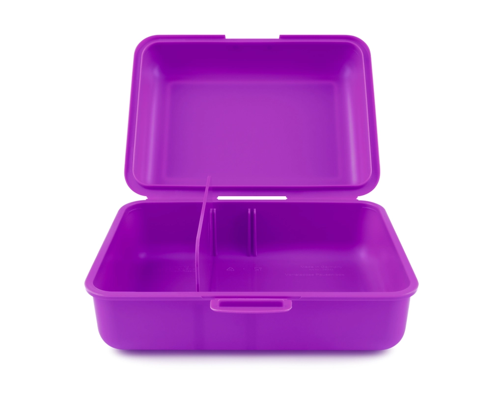Elegantiška violetinė dėžutė su auksotro tema suteiks jūsų maistui žaismingą išvaizdą.
