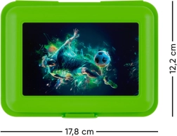Mėgaukitės patogumu ir stiliumi su šia plastikine pietų dėžute, papuošta dinamišku futbolo motyvu. Ji sukurta maksimaliam funkcionalumui ir estetikai: