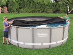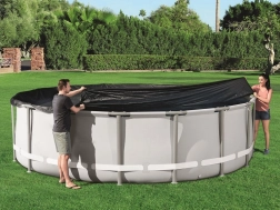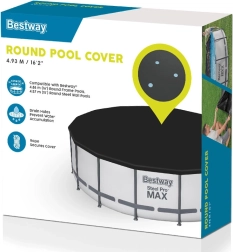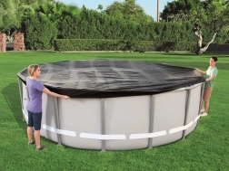 Universali Bestway dengiamoji plėvelė – puiki jūsų karkasinio baseino, kurio skersmuo 488 cm, arba Hydrium 460 cm tipo baseino apsauga. Ši danga saugo baseiną nuo vabzdžių, paukščių, lapų ir lengvo lietaus, taip pat suteikia šiluminę izoliaciją.