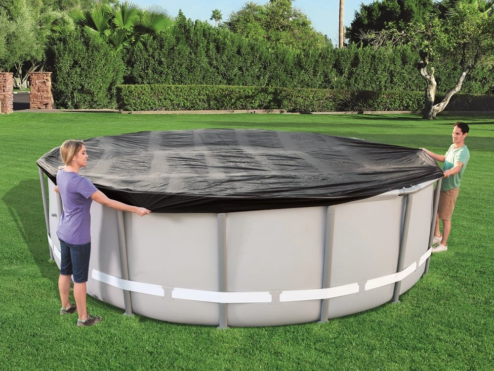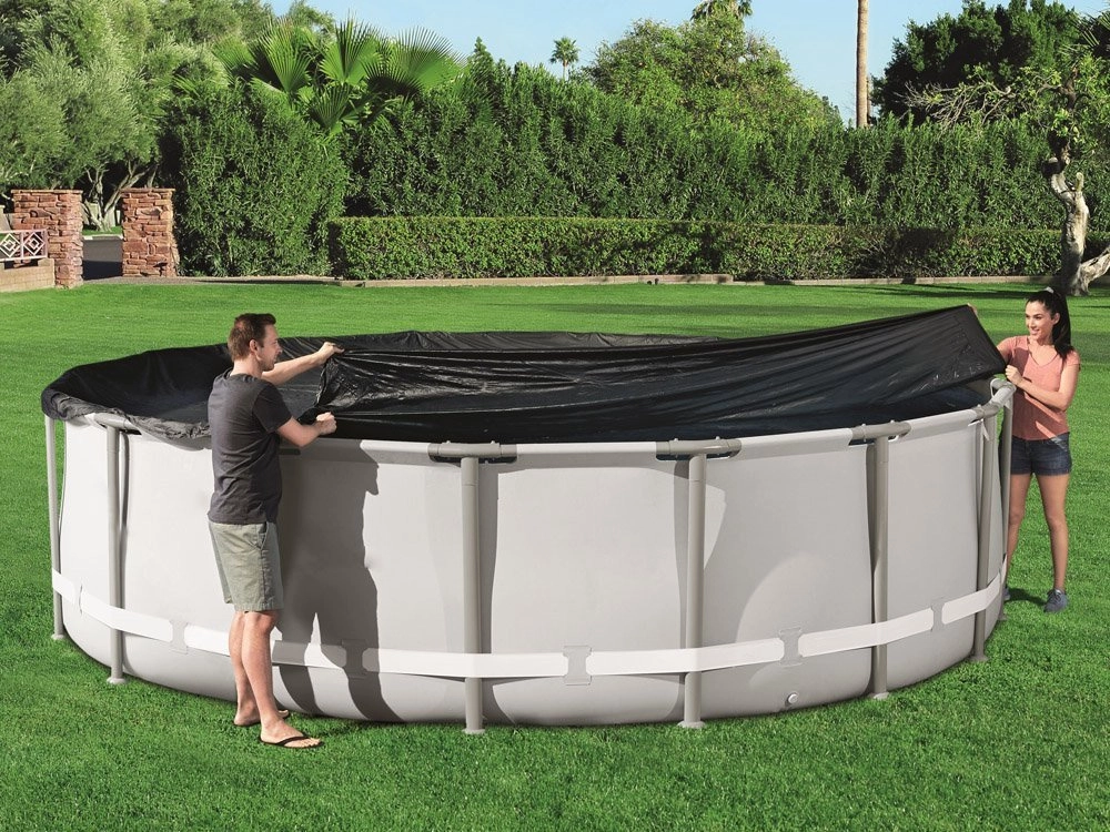 Geriausia apsauga jūsų karkasiniam baseinui: Ši universali Bestway dengiamoji plėvelė patikimai saugo baseiną nuo vabzdžių, paukščių, lapų ir lengvo lietaus.