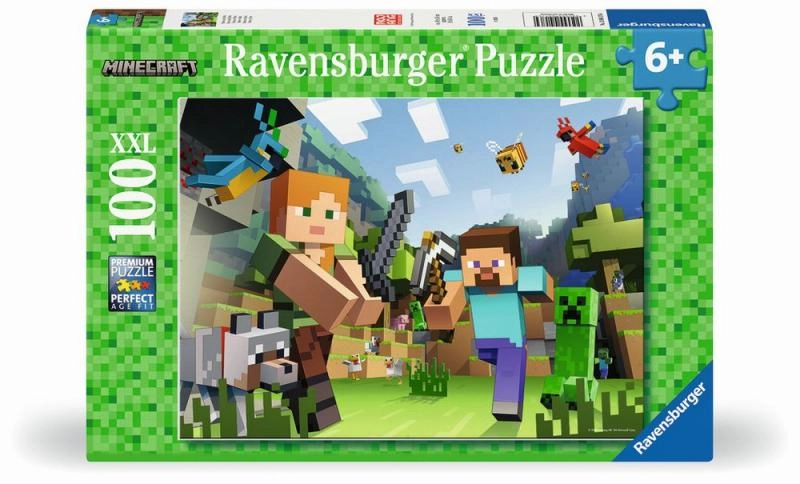 Atraskite Minecraft pasaulio žavesį 100 dalių dėlionėje. Ši dėlionė – puikus būdas praleisti laiką kuriant ir smagiai leidžiant laiką. Privalumai:
