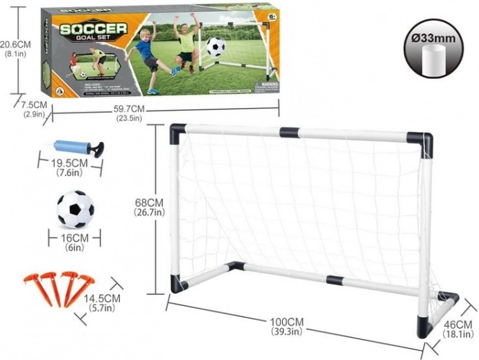 Futbolo rinkinys mažiems ir dideliems žaidėjams, kuriame yra sulankstomas vartas ir kamuolys. Puikus papildymas visiems futbolo gerbėjams, idealus žaidimui sode ar parke.
