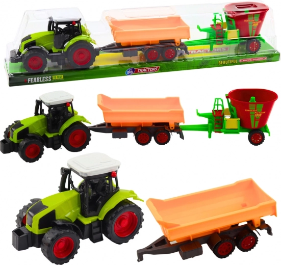 Smagus rinkinys mažiesiems ūkio gerbėjams: žalias traktorius su savivarčiu priekabos kėbulu ir funkcionaliu pašarų vežimu siūlo realistišką žaidimą namuose ir lauke. Dėl tvirto dizaino, didelių ratų ir kruopštaus detalumo lavina vaikų kūrybiškumą ir motoriką. Savivartė kėbulo dalis, pašarų vežimas ir atsparus plastikas užtikrina ilgas išradingo žaidimo valandas.