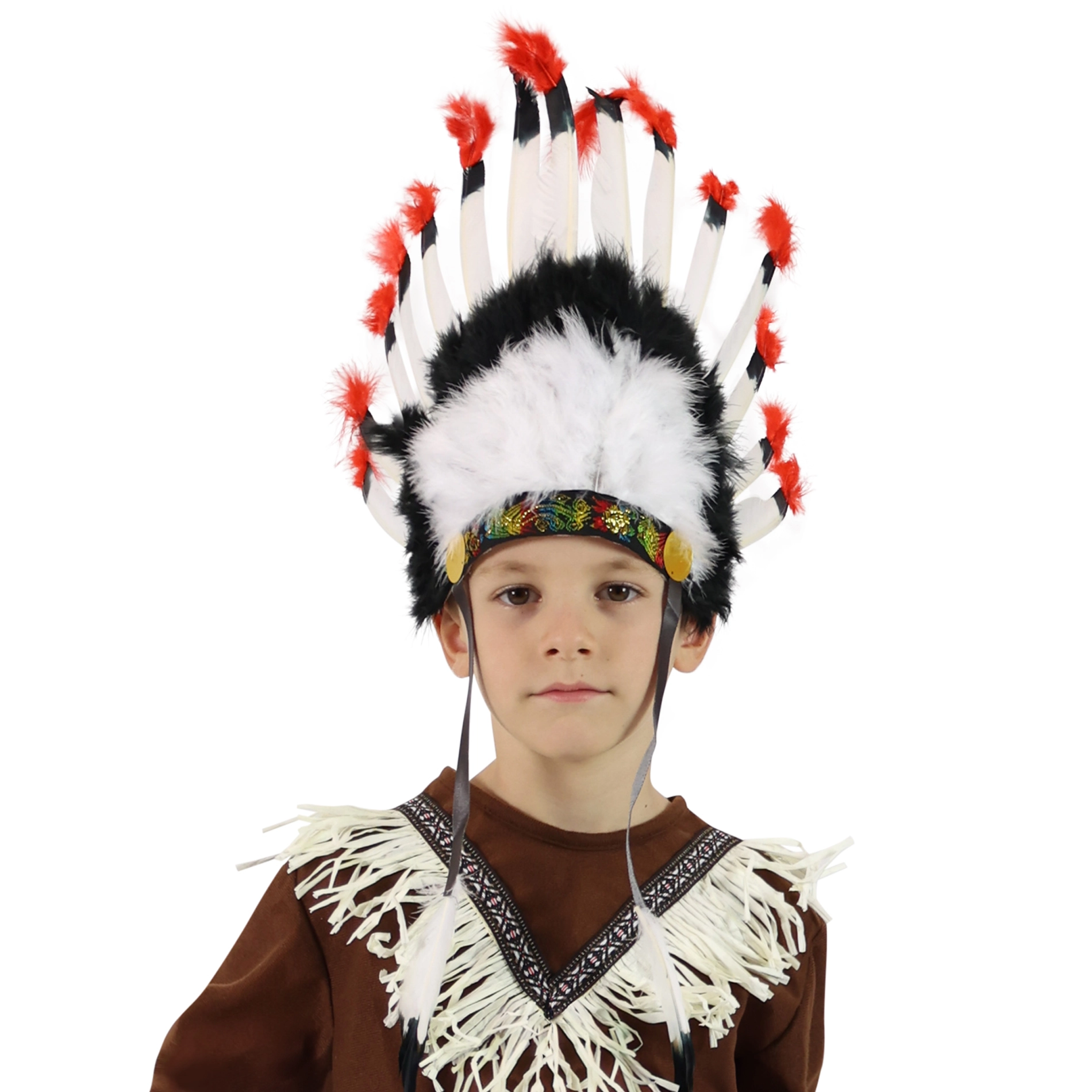 Stilinga karnavalinė galvos juosta mažiems ir dideliems vadams, suteikianti kostiumui autentišką išvaizdą. Ji yra lengva, patogi ir dėl elastinės gumelės lengvai prisitaiko prie bet kurios galvos. Ideali karnavalui, gimtadienio šventėms ir indėnų žaidimams. Juostos raštas gali skirtis nuo pavaizduoto.