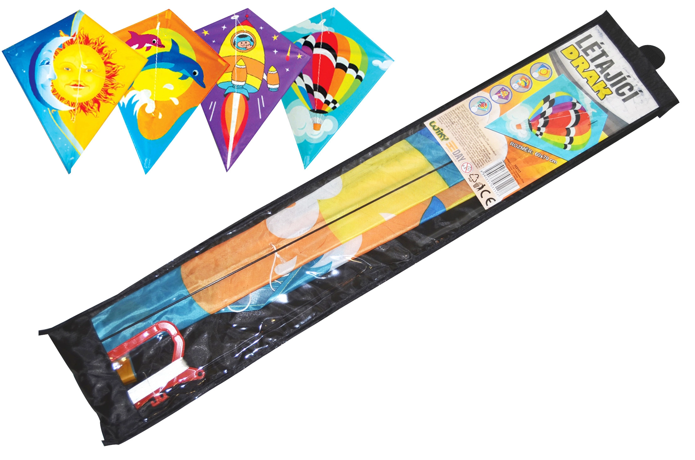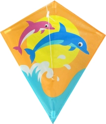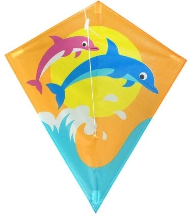 Puikus rombinis aitvaras, kurio matmenys 60 × 70 cm, pagamintas iš lengvo nailono, puikiai atsparaus vėjui ir lengvai pakylančio net esant silpnam vėjeliui. Ryškios spalvos ir žaismingi motyvai iškart patinka vaikams ir puikiai matosi danguje.
