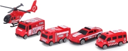 Keturi skirtingi gaisrinės automobiliai, sraigtasparnis ir gaisrininko figūrėlė leidžia vaikams kurti įdomias gelbėjimo misijas ir lavinti vaizduotę.