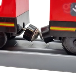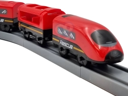 Modernus baterijomis varomas lokomotyvas (2× AAA, nepridedama) važiuoja turtingai įrengta trasa su tiltu ir tuneliu dar realesnei patirčiai.