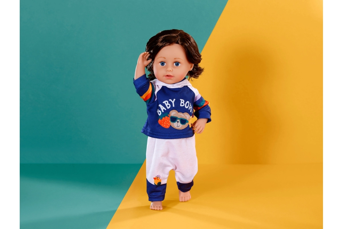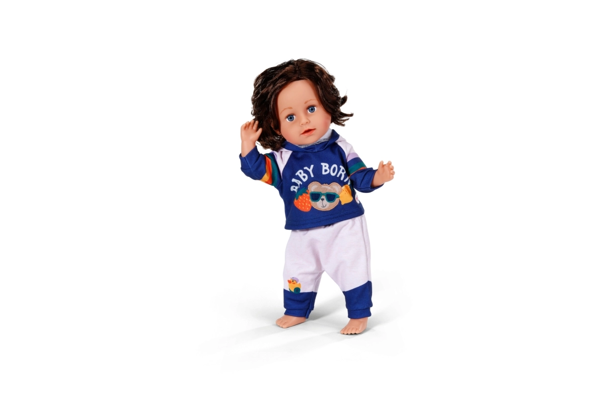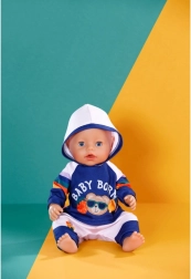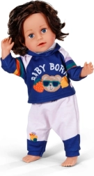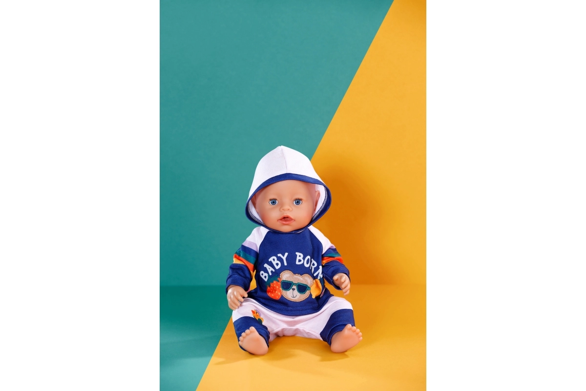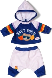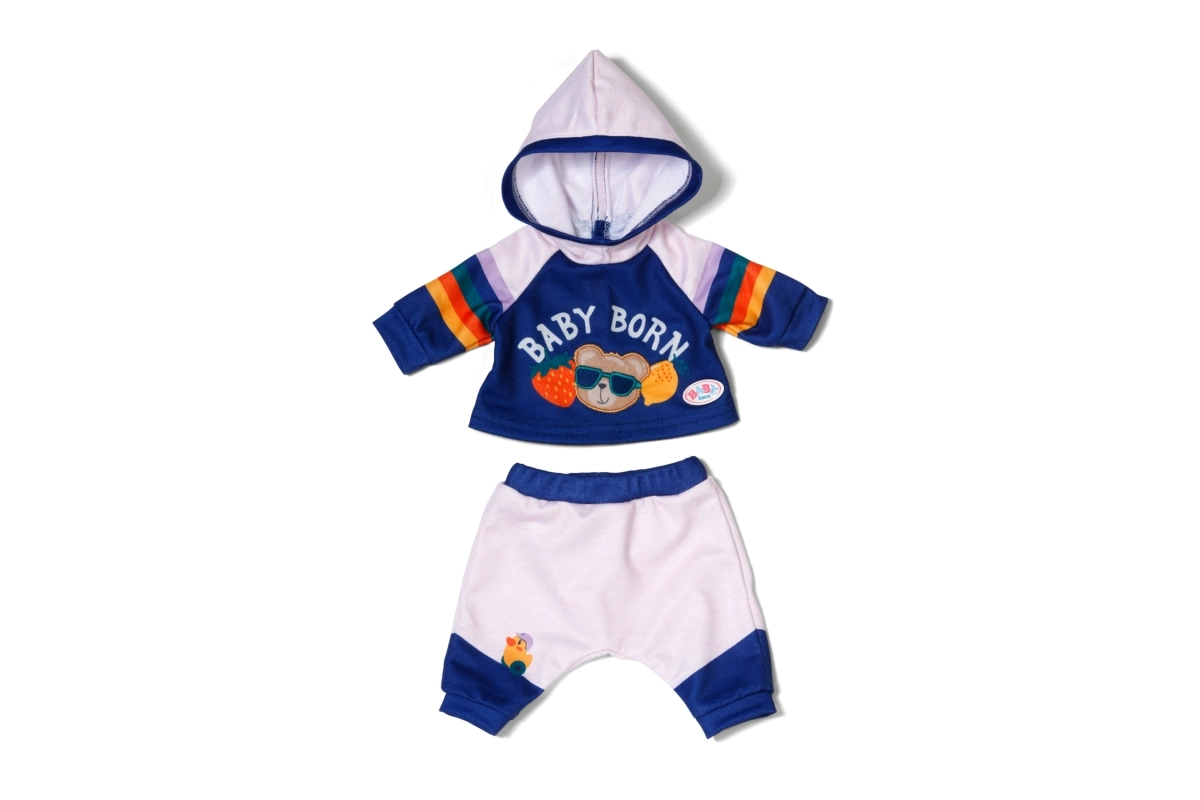 Stilingas treninginis kostiumėlis 43 cm dydžio lėlėms suteikia žaidimui naują dimensiją. Rinkinyje yra gobtuvas megztinis ir kelnės mėlynai baltos spalvų derinyje su žaismingomis vaivorykštės juostomis ir BABY BORN spauda. Aprangą lengva aprengti ir nurengti, ji ideali vaidmenų žaidimams, smulkiosios motorikos lavinimui ir vaikų vaizduotės skatinimui nuo 3 metų.