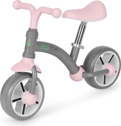 ECOTOYS balansinis dviratukas – puikus pirmasis žingsnis link dviračio. Vaikai natūraliai lavina koordinaciją, stabilumą ir pasitikėjimą, todėl vėliau lengviau pereina prie pedalais minamo dviračio be papildomų ratukų. Dėl nedidelio svorio vaikui lengva valdyti, o tėvams – patogu nešti.