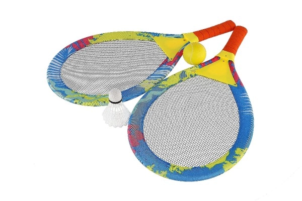 Pakuotėje rasite dvi raketes, putplasčio kamuoliuką ir badmintono plunksną, todėl galėsite kaitalioti žaidimus pagal nuotaiką – nuo paprasto pasipinkavimo iki „paplūdimio teniso“ ar bazinio badmintono. Saugus atlikimas tinkamas jau nuo 3 metų.