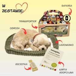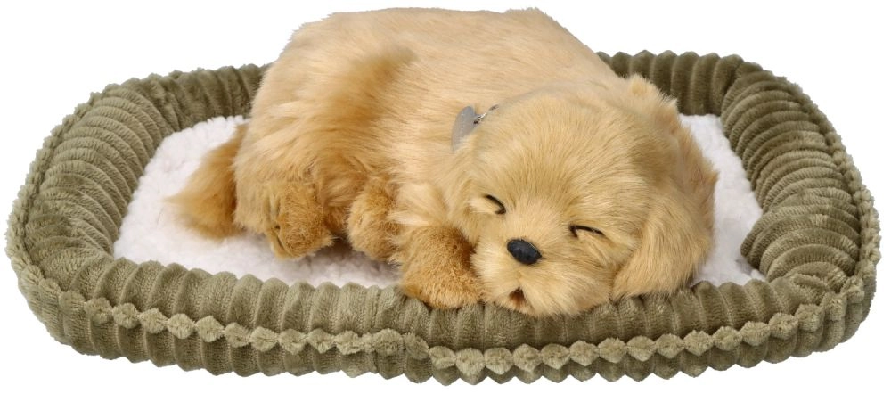 Įsivaikink kvėpuojantį auksaspalvio retriverio šuniuką – tai žavus bičiulis, kuris ramina ir džiugina. Miegantis šuniukas su antkakliu ir tikroviškomis detalėmis atrodo lyg gyvas, o švelnus „pilvuko kilnojimasis“ kvėpuojant veikia natūraliai ir švelniai. Komplekte yra ir patogus guolis, kad šuniukas turėtų savo saugią vietelę.