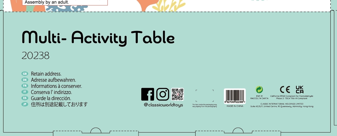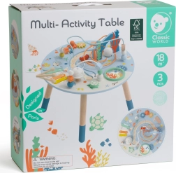 Medinis veiklos staliukas iš Classic World – idealiai tinka smalsiems vaikams! Pilnas spalvingų pramogų, tokių kaip penkios smulkiosios motorikos veiklos, krumpliaračiai, metalofonas ir būgnelis, jis teikia daug džiaugsmo ir kartu padeda lavinti svarbius įgūdžius: rankų miklumą, loginį mąstymą ir vikrumą.