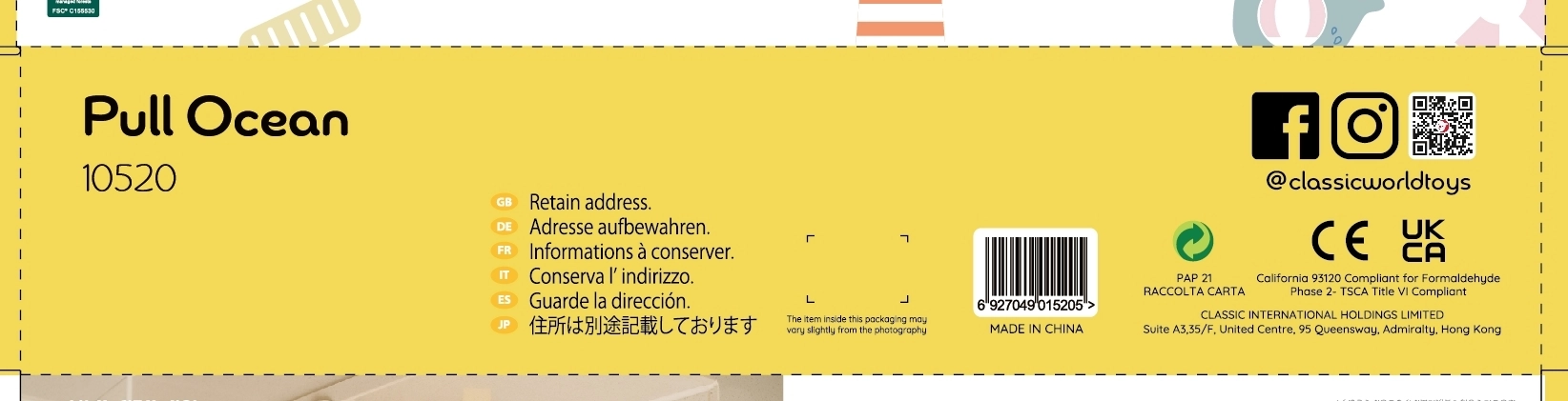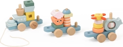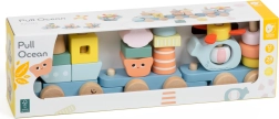 Medinis tempiamas traukinukas Ocean iš CLASSIC WORLD, pastelinėmis spalvomis, jungia pramogą ir mokymąsi – lavina smulkiąją motoriką, koordinaciją ir vaizduotę. Vaikai dėlioja vandenyno tematikos formas, sujungia tris vagonėlius, o dėka virvelės traukinuką gali temti tiek ropodami, tiek eidami.