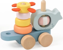 Traukinukas lavina smulkiąją motoriką, erdvinę vaizduotę ir kūrybiškumą. Trys sujungiami „vagonai“ talpina įvairius konstravimo kaladėlius, kuriuos vaikai gali laisvai derinti. Tempiama virvelė skatina judėti ir paverčia kiekvieną kambarį nuotykių kupina vandenyno kelione.